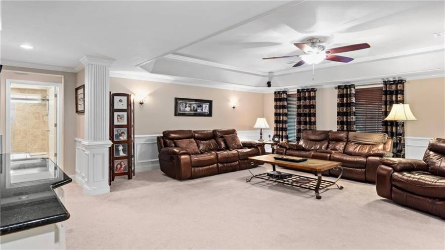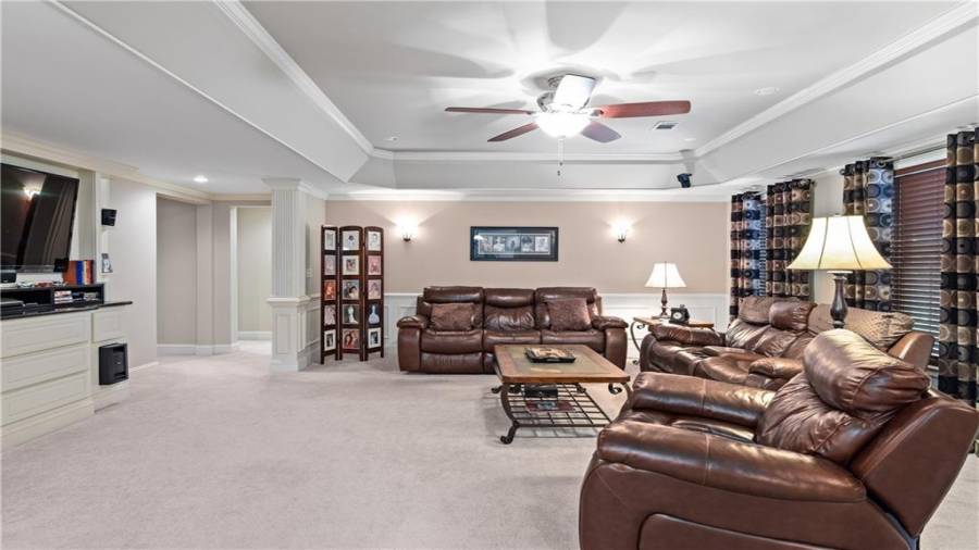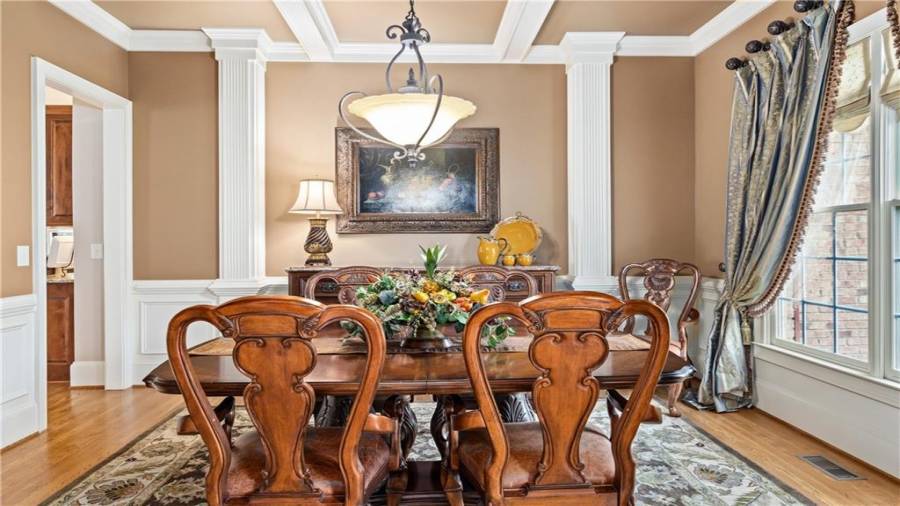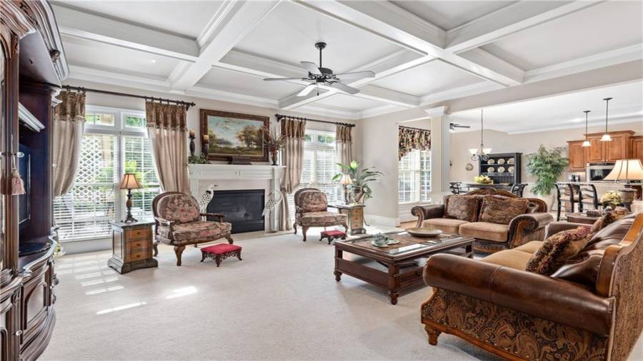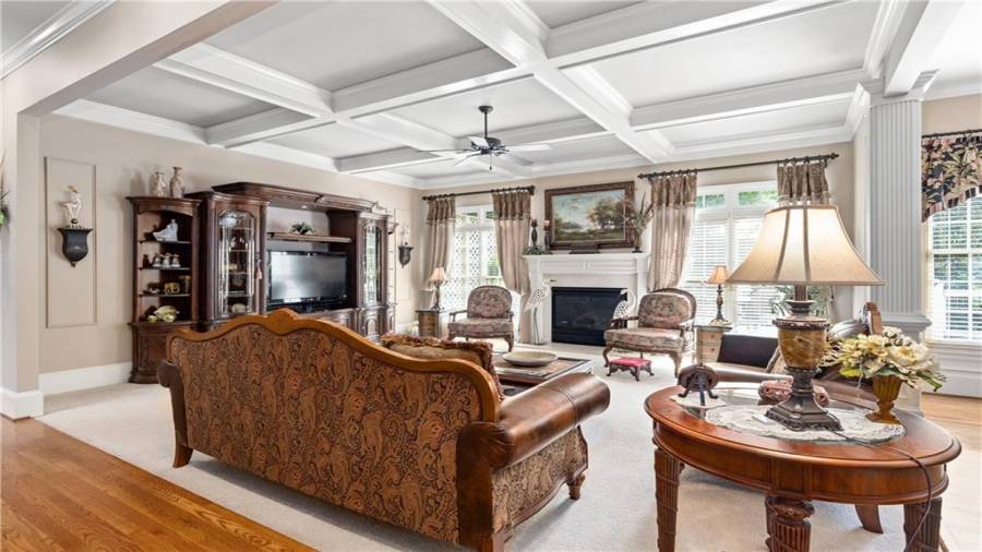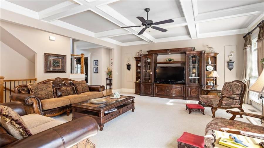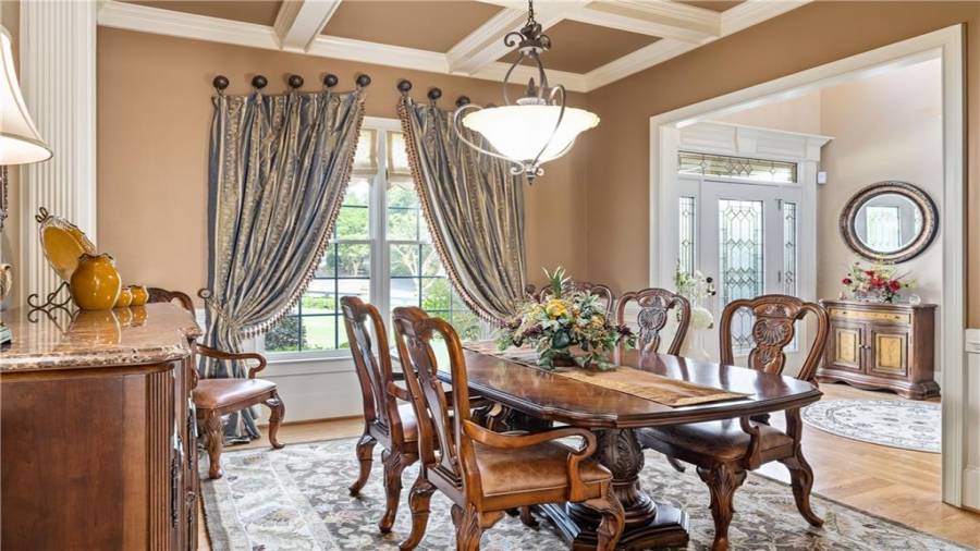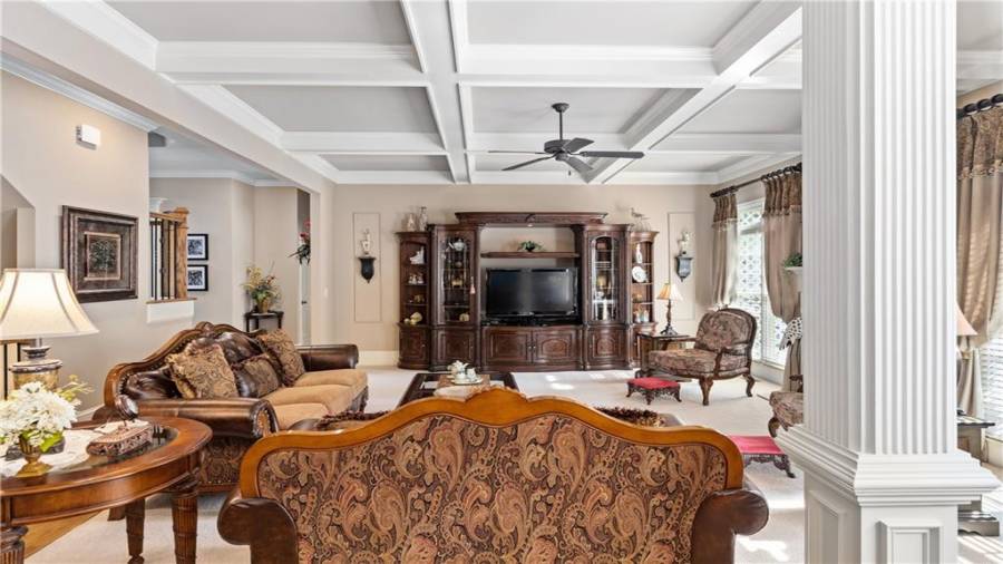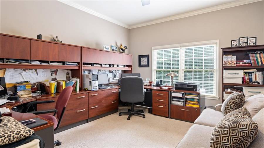 : High Ceilings 9 Ft Main, High Speed Internet, Disappearing Attic Stairs, Double Vanity, Tray Ceiling(s), Walk-in Closet(s), Entrance Foyer 2 Story, His And Hers Closets, Bookcases, Coffered Ceiling(s)
