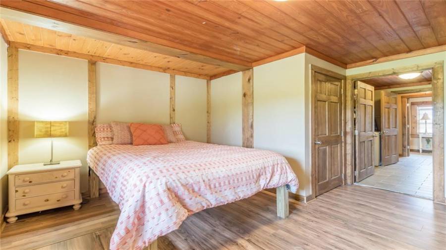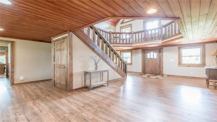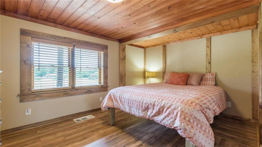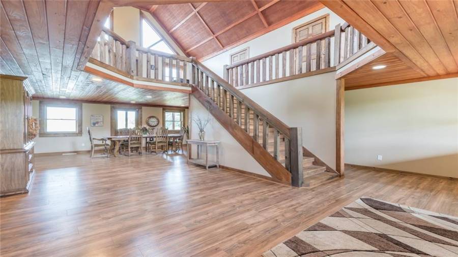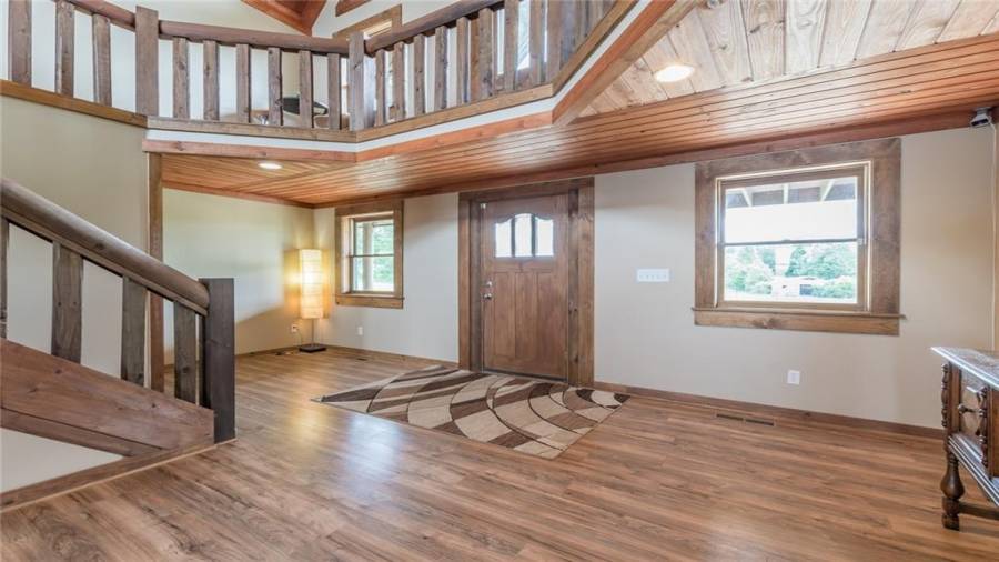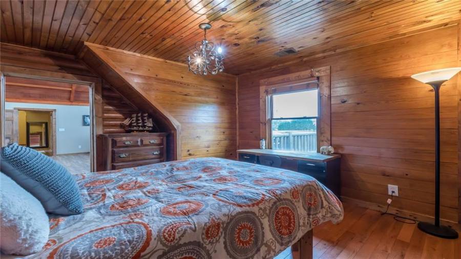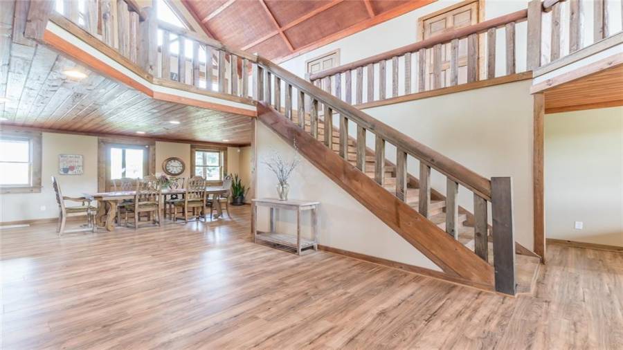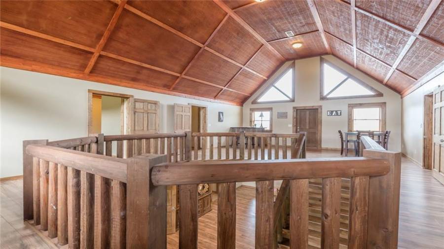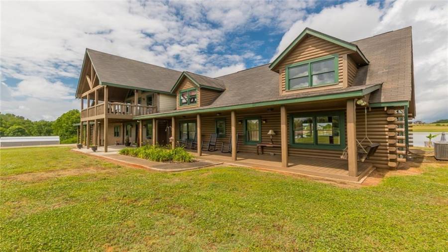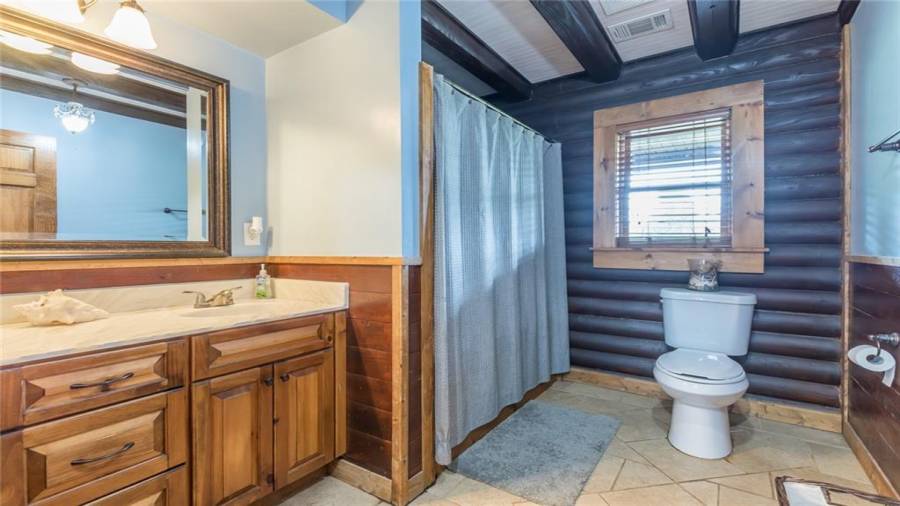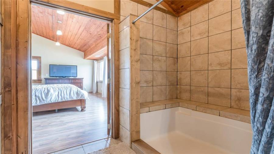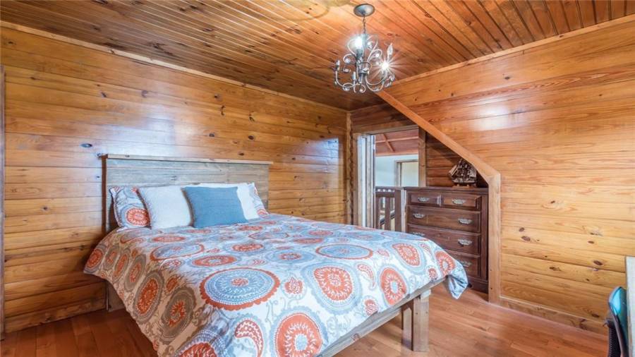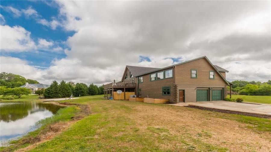 Indulge in gathering around a fire or relaxing in your jacuzzi under a blanket of stars. At the heart of this stunning log home is a beautiful country-chic kitchen with custom cabinets, stainless steel appliances, butcher’s block countertops, and a walk-in pantry. Enjoy gathering in the family room or the two-story great room, both with 20+ ft. ceilings and an abundance of natural light from the custom-made windows.