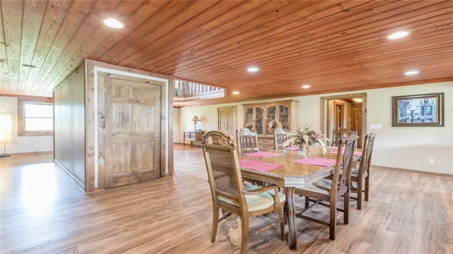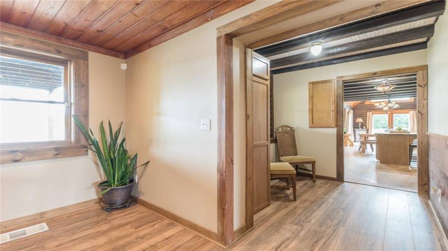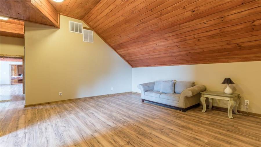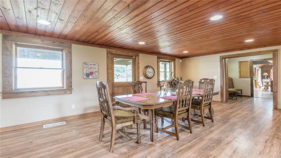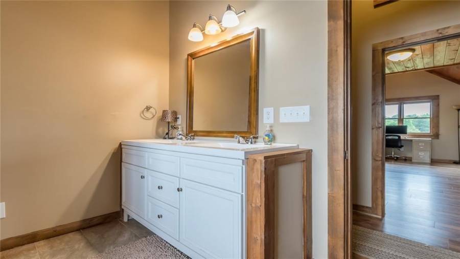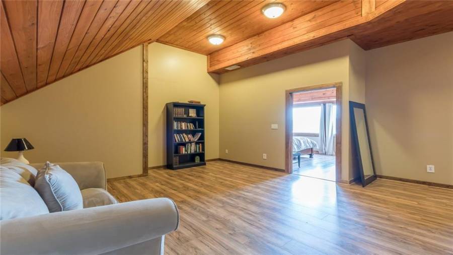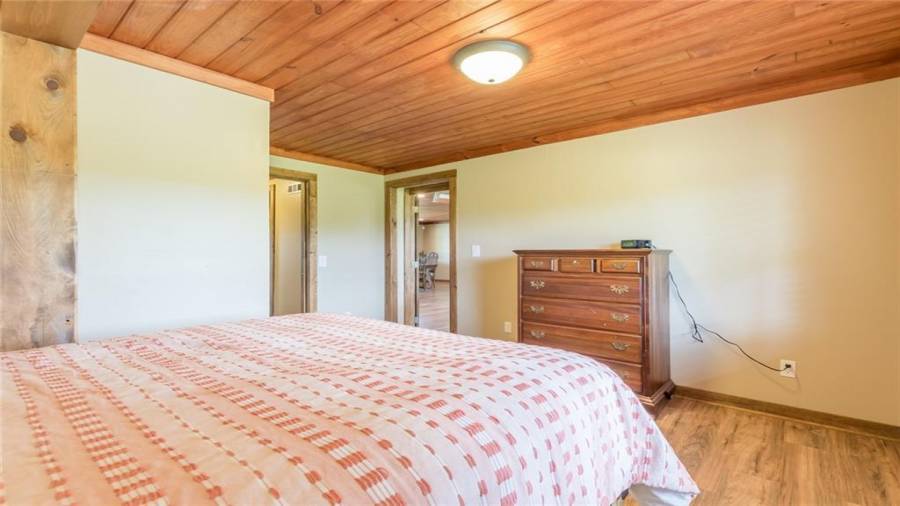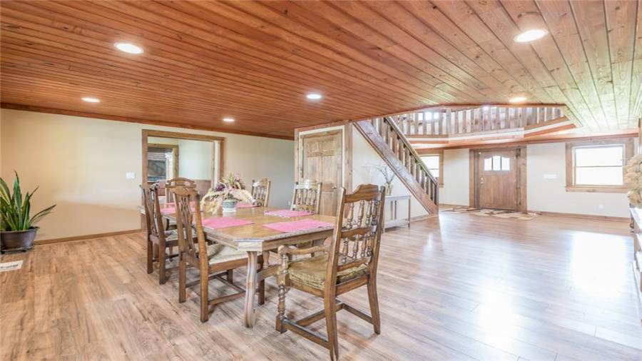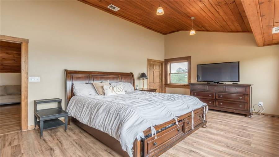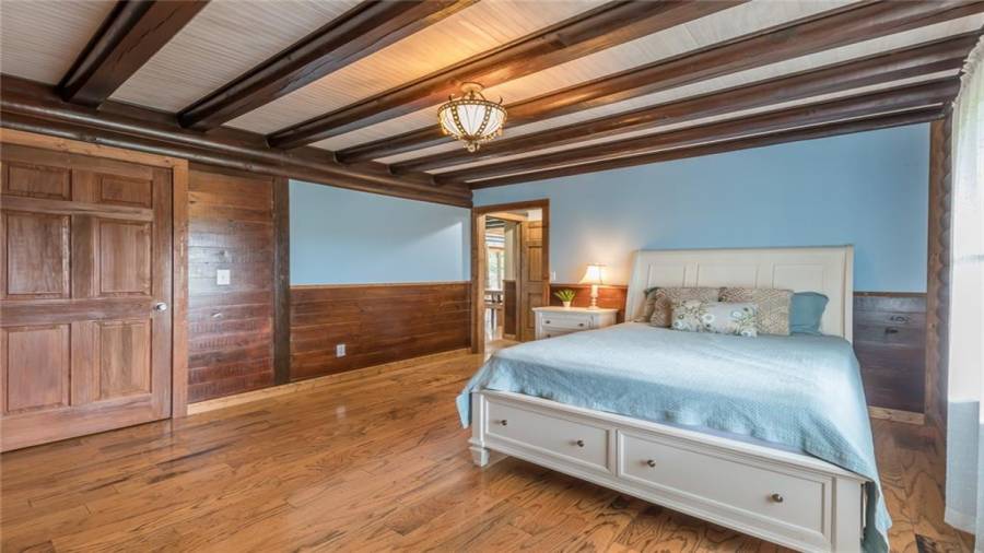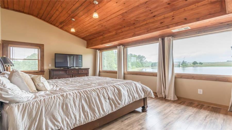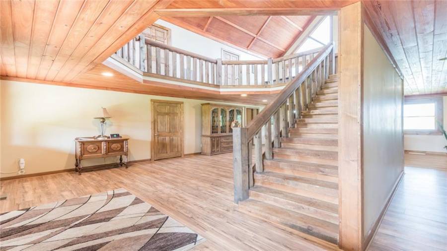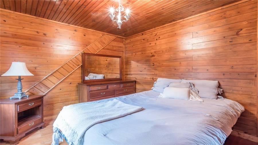 Indulge in gathering around a fire or relaxing in your jacuzzi under a blanket of stars. At the heart of this stunning log home is a beautiful country-chic kitchen with custom cabinets, stainless steel appliances, butcher’s block countertops, and a walk-in pantry. Enjoy gathering in the family room or the two-story great room, both with 20+ ft. ceilings and an abundance of natural light from the custom-made windows.
