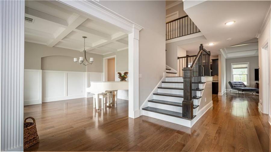 : Disappearing Attic Stairs, Double Vanity, High Ceilings 10 Ft Lower, Tray Ceiling(s), Beamed Ceilings, Entrance Foyer 2 Story, Bookcases, High Ceilings 10 Ft Main