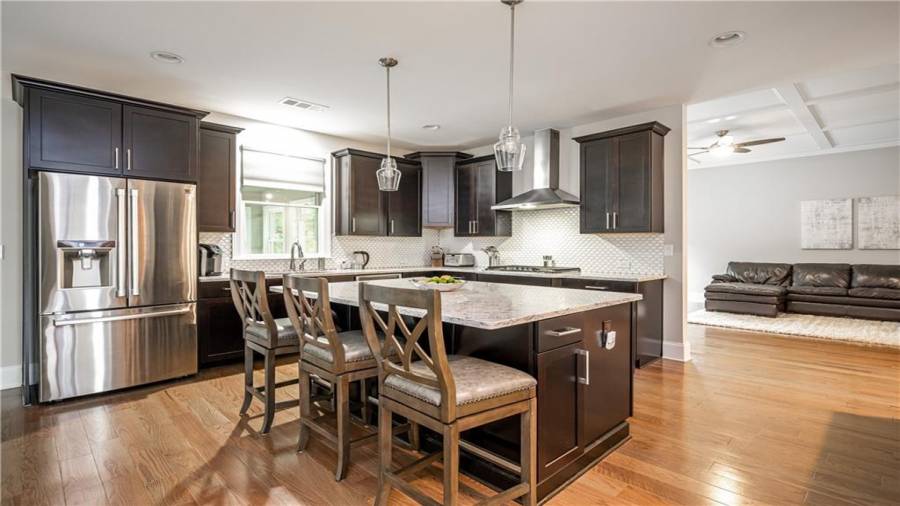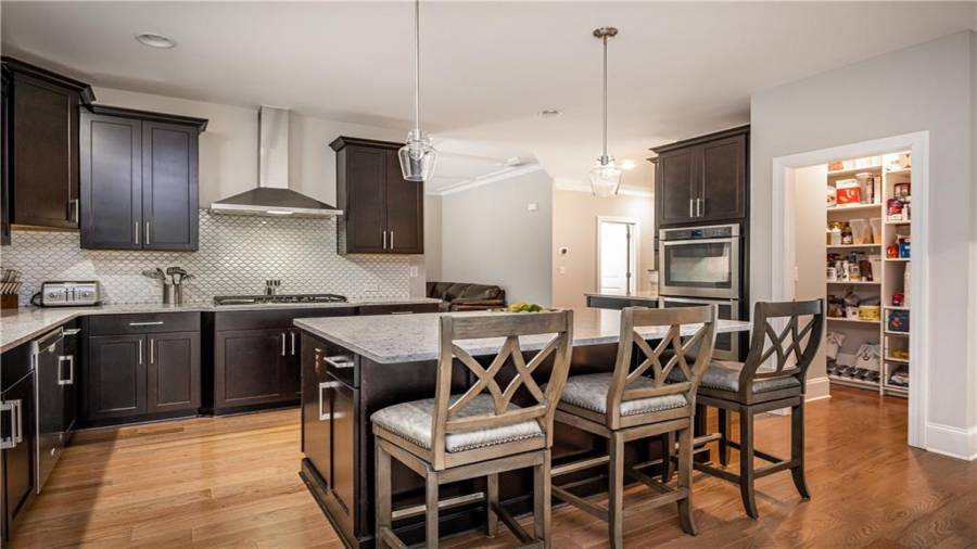 : Breakfast Bar, Pantry Walk-in, Kitchen Island, View To Family Room, Stone Counters, Cabinets Other
