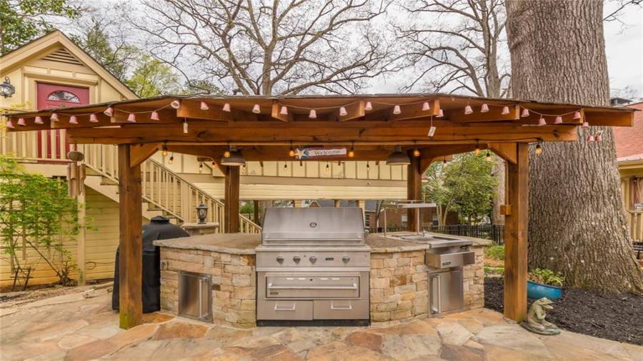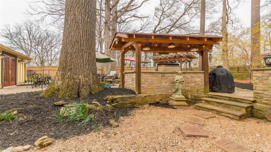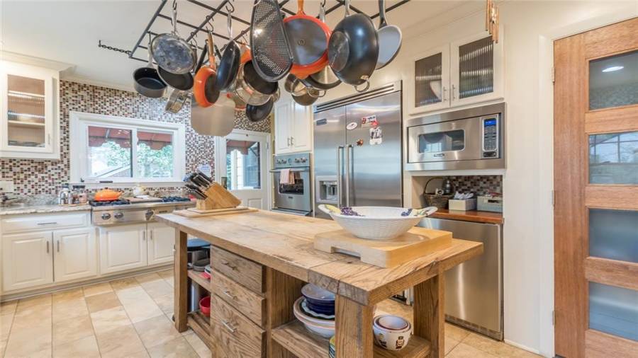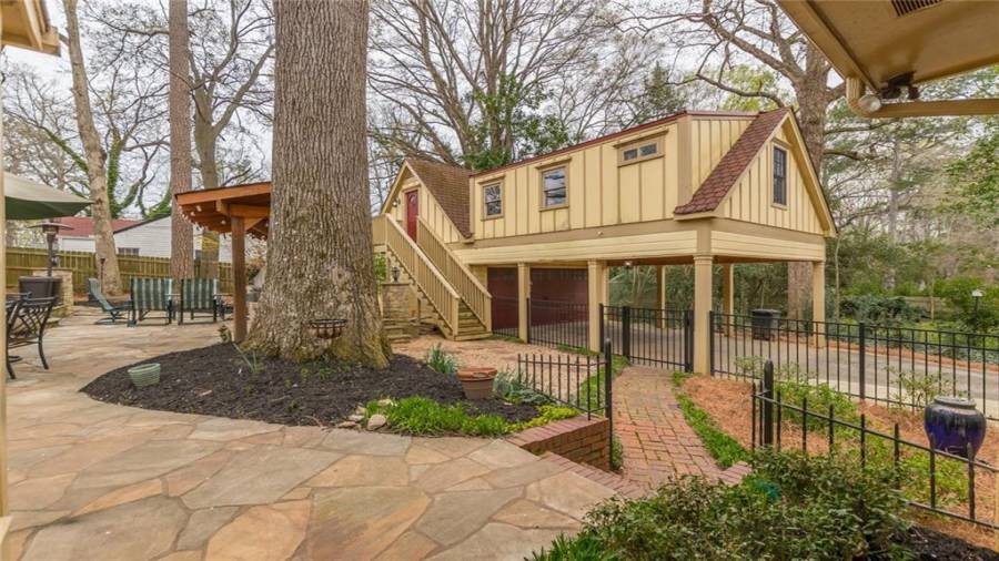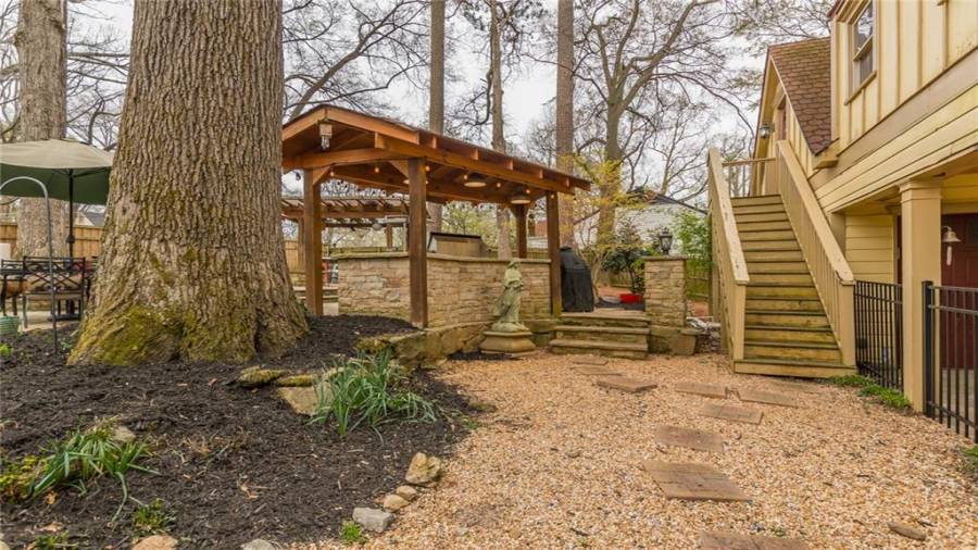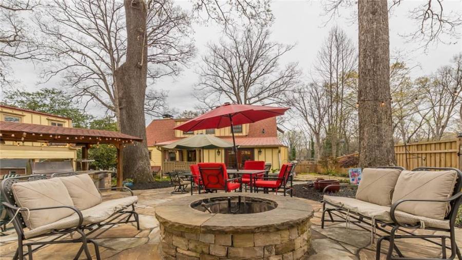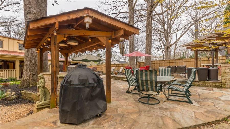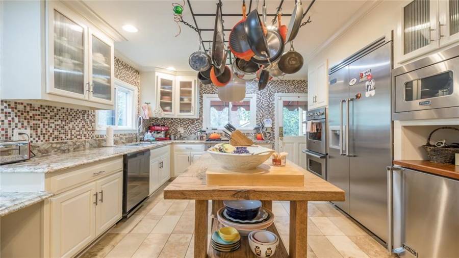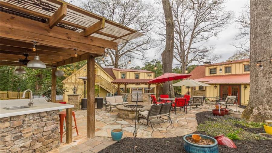 Beautifully renovated home with an extra living space and two masters and a fabulous outdoor kitchen. Main house has a master on the main also a master bedroom upstairs. This home is great for entertaining with a custom outdoor kitchen with Viking appliances, bar, and firepit along with beautiful seasonal landscaping. Home also features a formal and informal dining room. Each bedroom has it’s own bathroom. Several living room and den spaces throughout the home and a private area for an office.