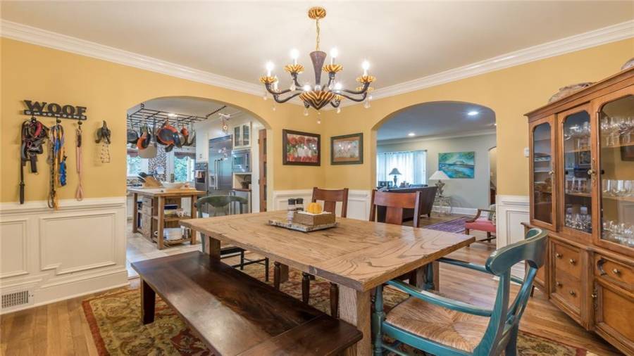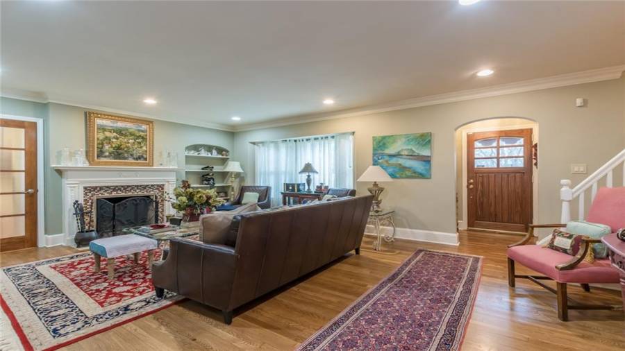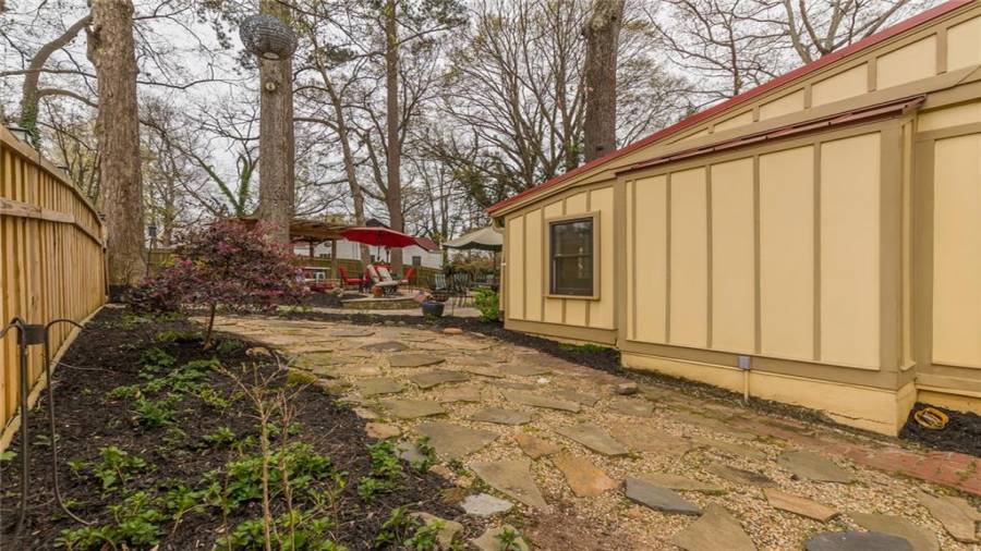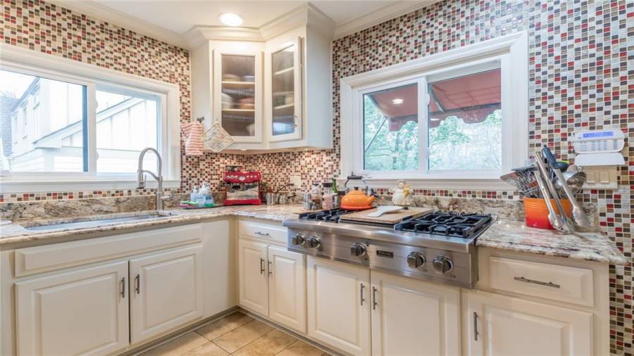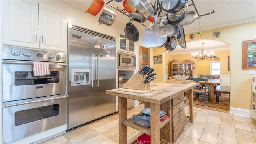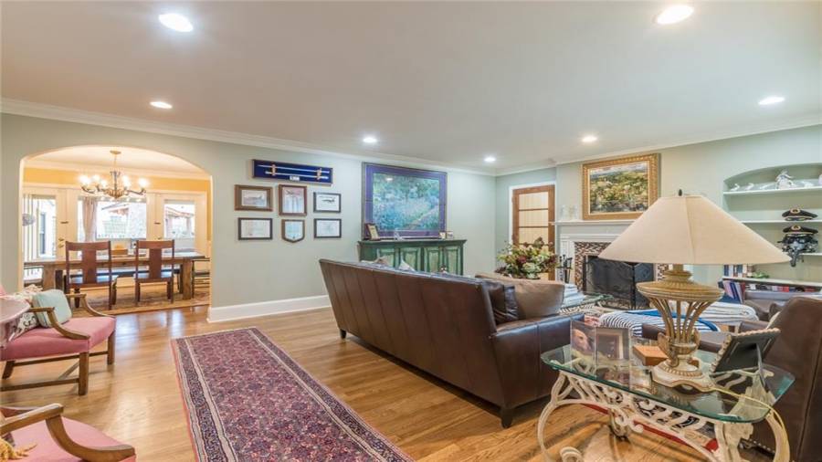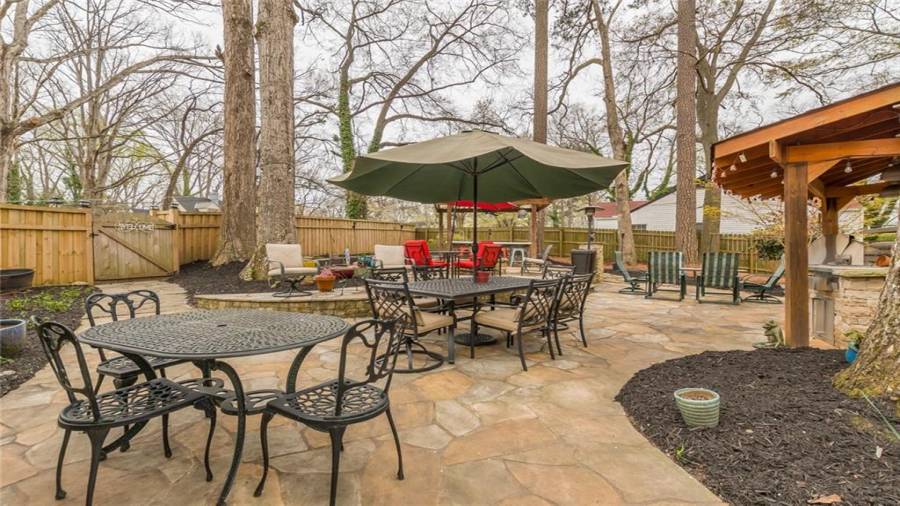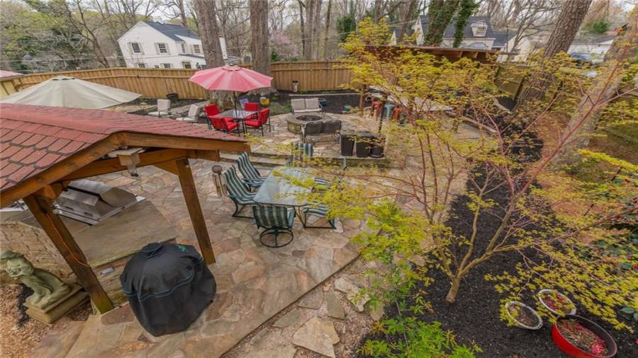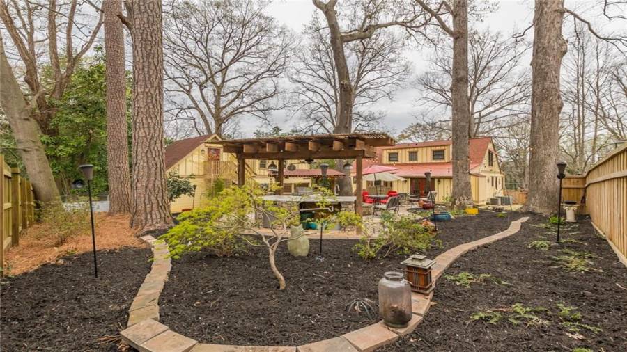Beautifully renovated home with an extra living space and two masters and a fabulous outdoor kitchen. Main house has a master on the main also a master bedroom upstairs. This home is great for entertaining with a custom outdoor kitchen with Viking appliances, bar, and firepit along with beautiful seasonal landscaping. Home also features a formal and informal dining room. Each bedroom has it’s own bathroom. Several living room and den spaces throughout the home and a private area for an office.