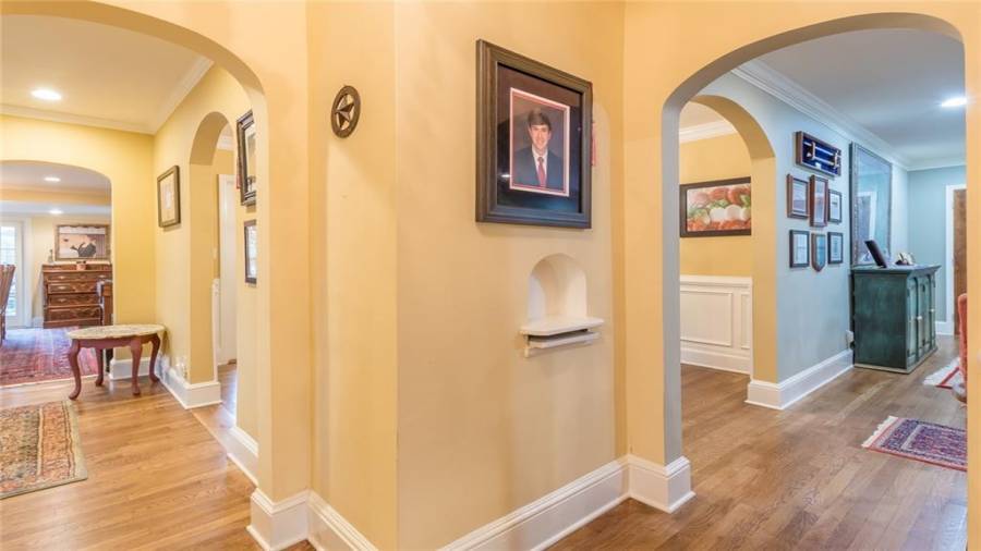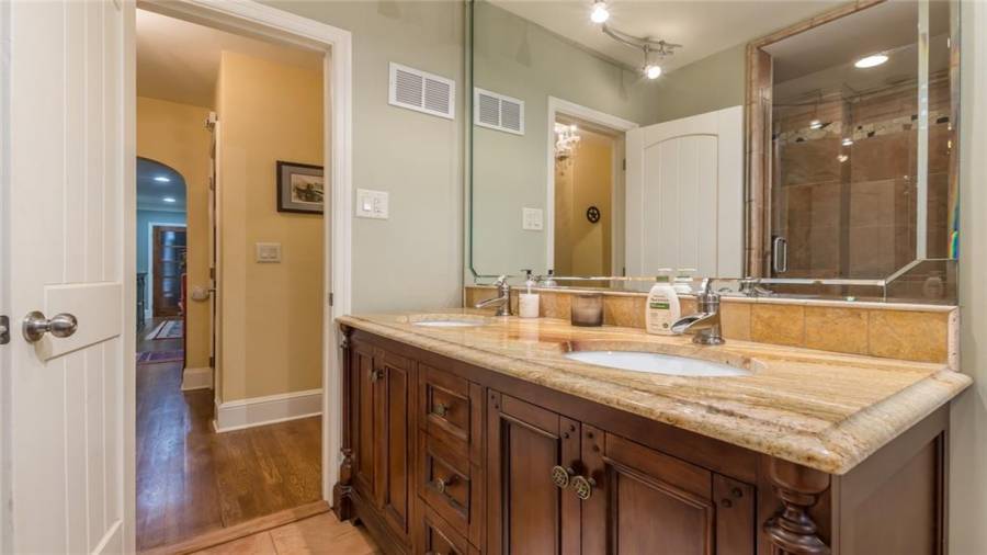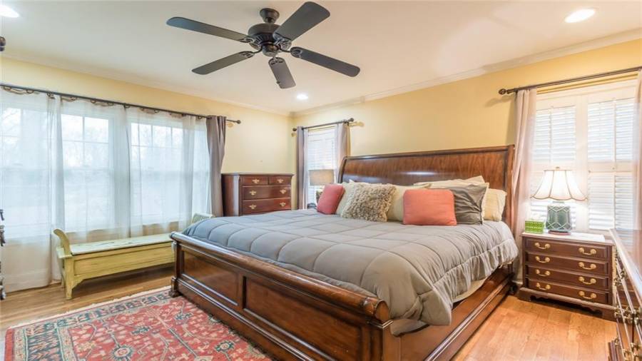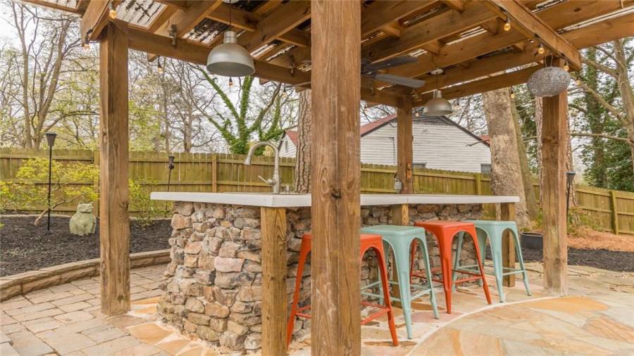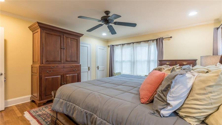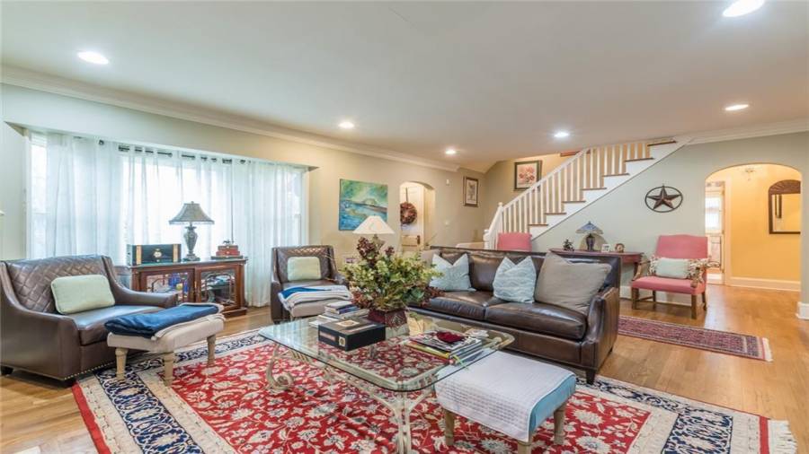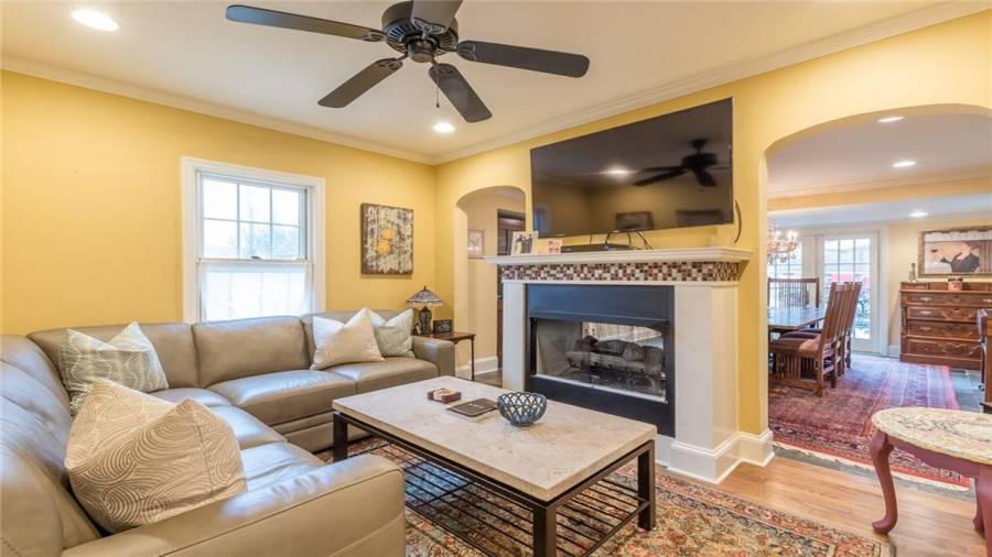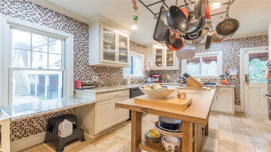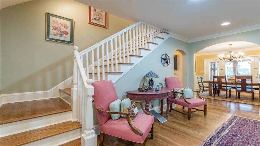 Beautifully renovated home with an extra living space and two masters and a fabulous outdoor kitchen. Main house has a master on the main also a master bedroom upstairs. This home is great for entertaining with a custom outdoor kitchen with Viking appliances, bar, and firepit along with beautiful seasonal landscaping. Home also features a formal and informal dining room. Each bedroom has it’s own bathroom. Several living room and den spaces throughout the home and a private area for an office.