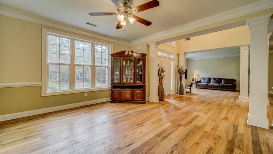 Welcome to this gorgeous home in the highly sought-after community of Jackson Estates in Fayetteville. With all brick siding, over 6 acres, and a long driveway leading off the road, this home has both curb appeal and privacy in one. This home boasts cathedral ceilings, stainless steel appliances, a movie theatre room, and a wet bar/bachelor pad downstairs. The oversized master features a sitting area, his/her closets, with a garden tub and tiled shower combo.