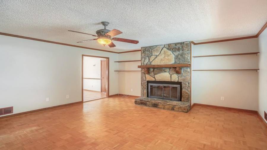 Come see this 3 bedroom, 2 bathroom home on a huge half-acre lot, located in a cul-de-sac. From the inviting front porch, enter into this wonderful home that provides endless possibilities. The living room features built-in shelving and a spectacular stone fireplace with a wood mantle. In the kitchen, enjoy wood cabinets, a gas stove, and a sliding glass door out to the large deck, perfect for entertaining! The primary bedroom is complete with a spacious walk-in closet and an en suite bathroom. Close to schools and Metromont Shopping Center.