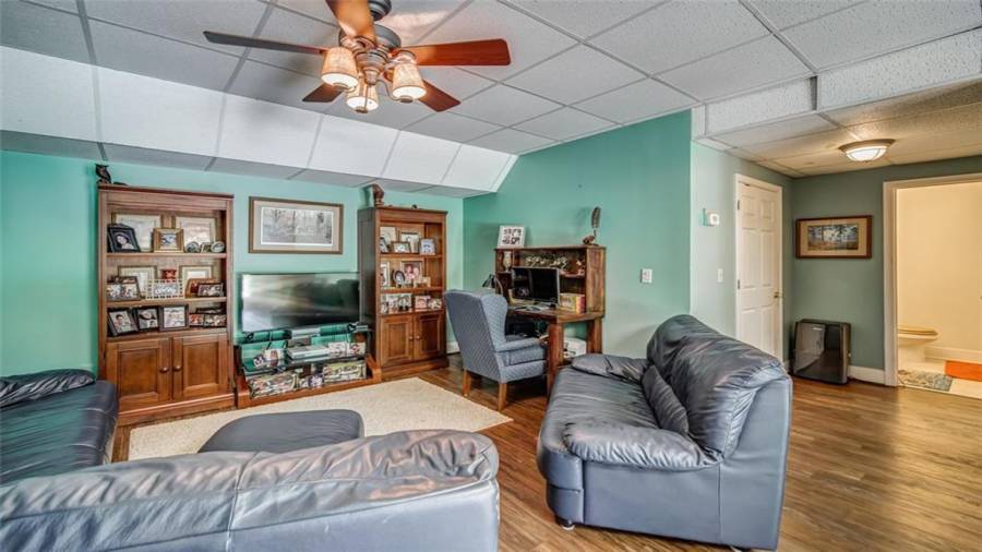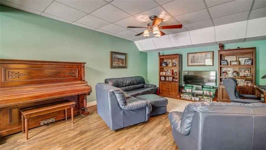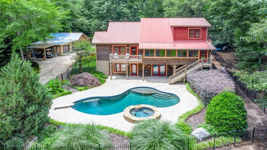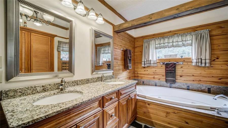 2+ acres in Creekview district. RV parking. 3-car detached garage. Waterfall koi pond, Lush landscaping. Kitchen granite counters, gas stove, island & pantry. Living room w/ wood beams & cathedral ceiling. Master on Main has walk-in closet. Master bath w/ granite double vanity, jetted tub & separate shower. 2nd bed, full bath & sunroom. Upstairs Bed & full bath. Bonus room for storage. Finished bsmt. w/ ½ bath. Large open area, & room for entertaining w/ bar area & sink. Saltwater, heated pool/spa. Level backyard. Barn & out building. NO HOA!