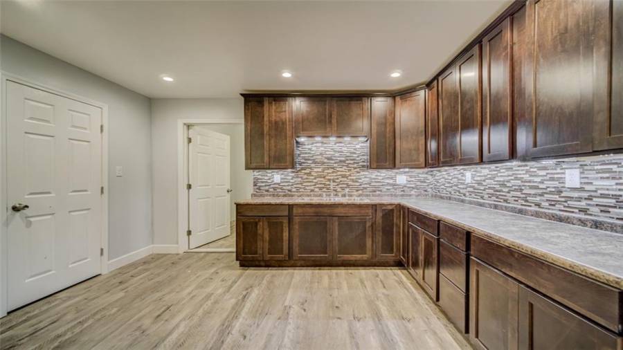 : Cabinets Stain, Pantry Walk-in, Kitchen Island, Pantry, Second Kitchen