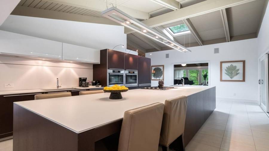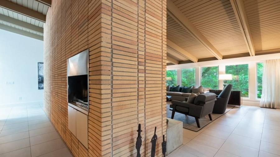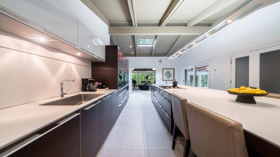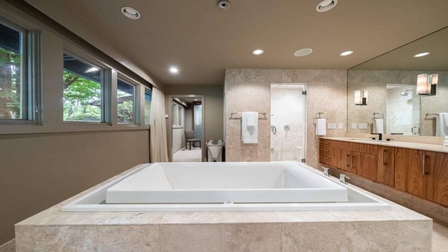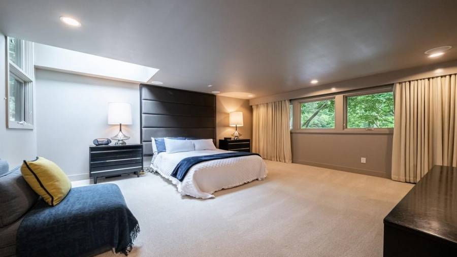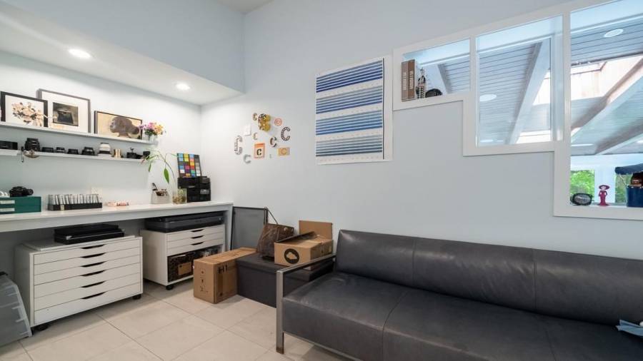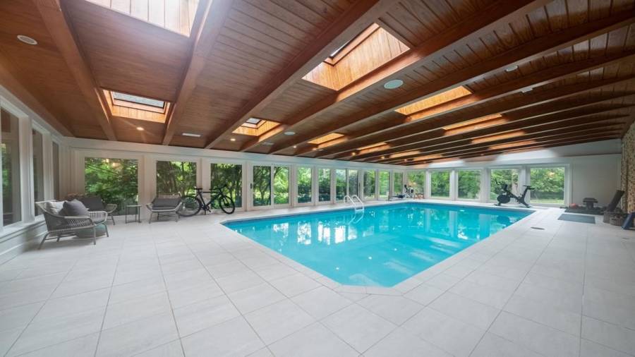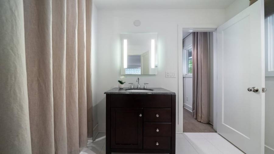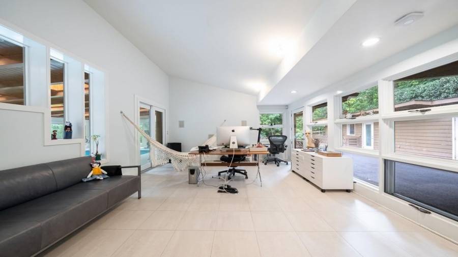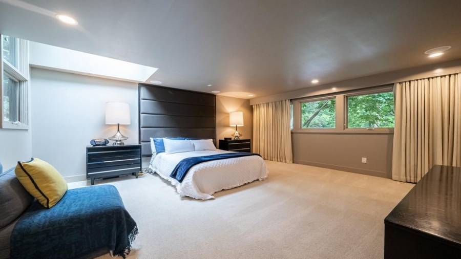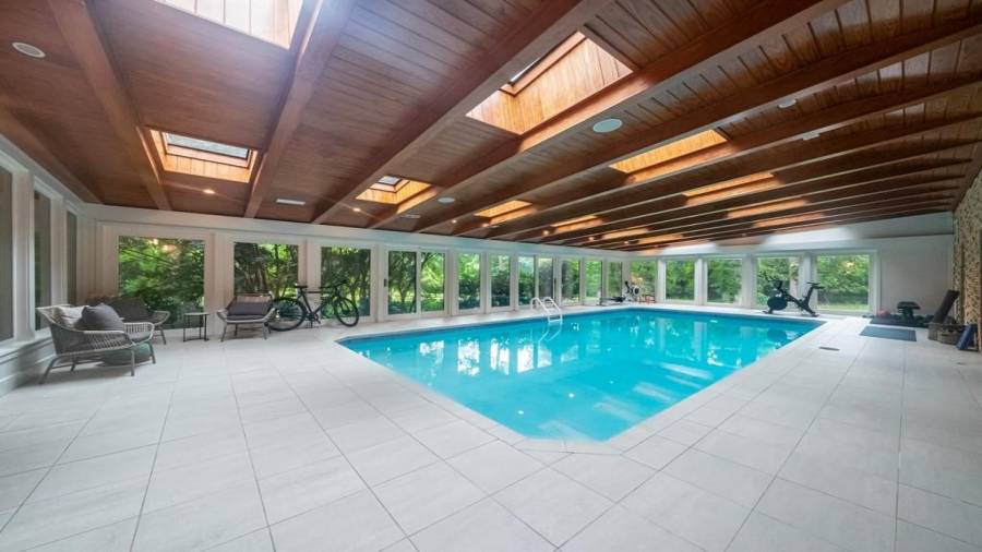 This stunning mid-century modern home was built in 1958 by the Nelkin family, well known architects at the time, who made it their residence into the mid 80’s. Completely renovated in 2005, this home was taken down to the studs and rebuilt, maintaining the architectural integrity while upgrading to current standards. The indoor pool roof was completely redesigned to include an additional 12 skylights, allowing the sky’s reflection to infuse the pool with a surreal light-sky-blue. Originally a 4 bedroom home, in the 2005 renovation, the Master Bath was expanded to