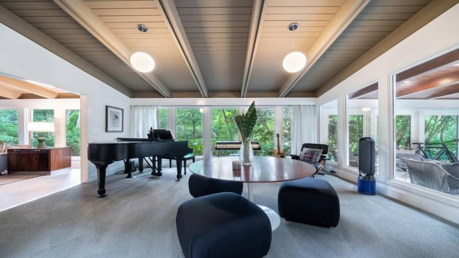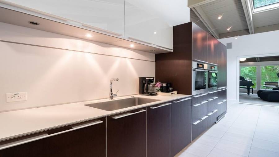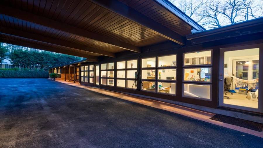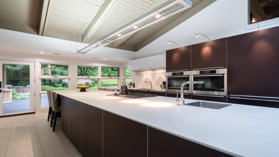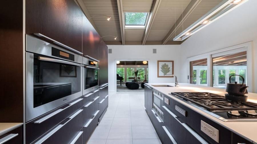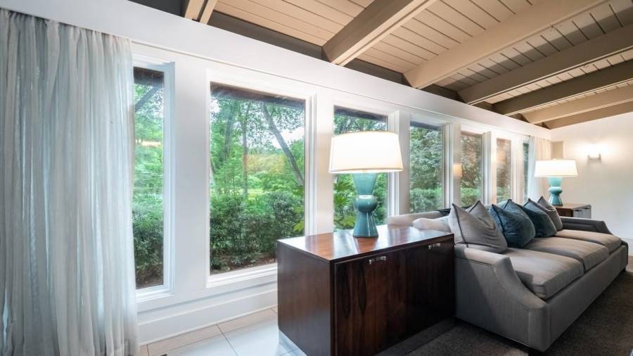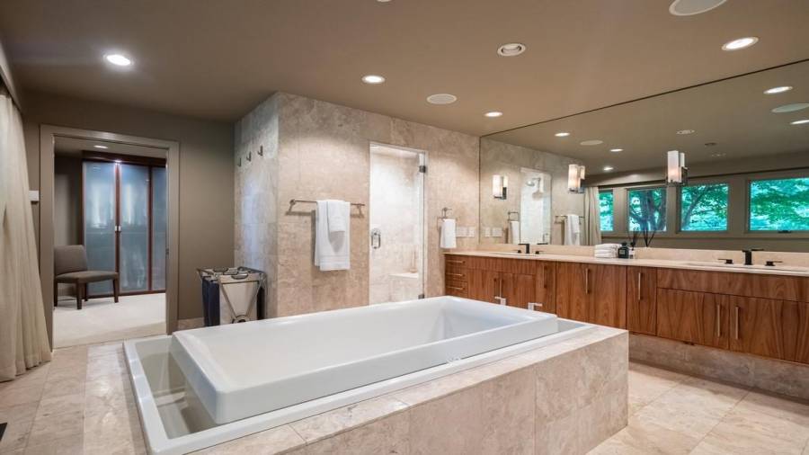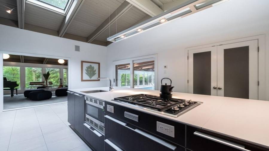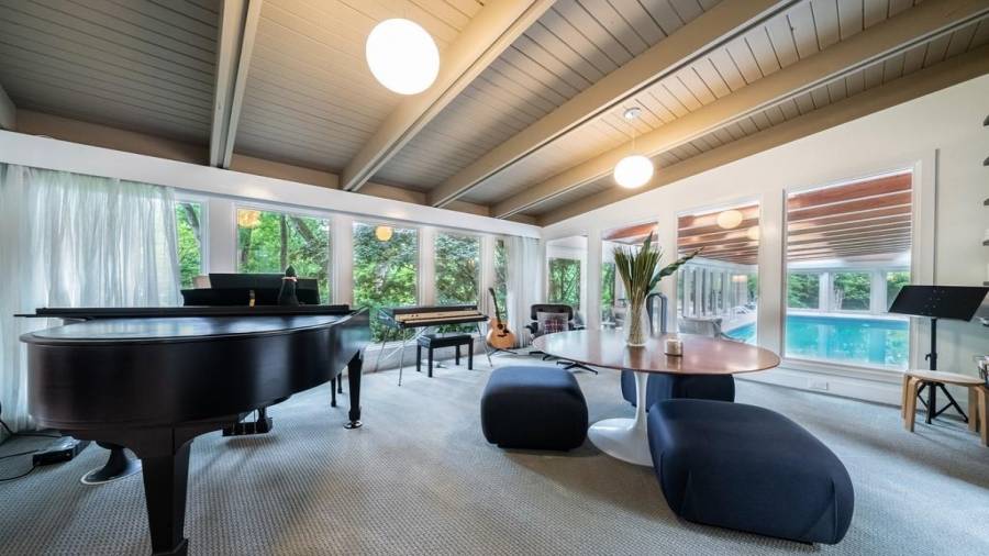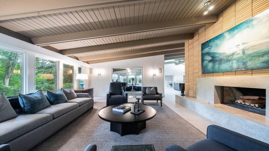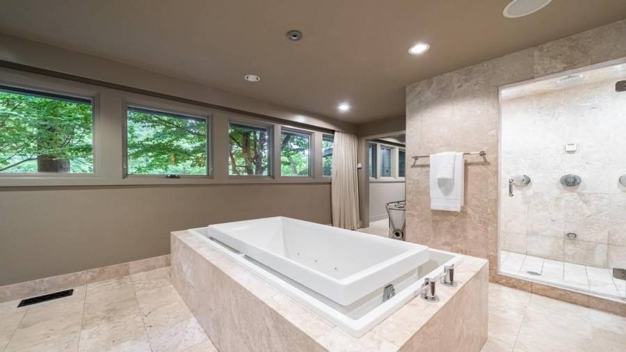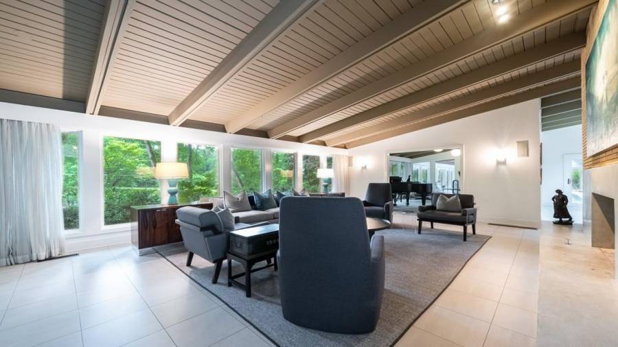 This stunning mid-century modern home was built in 1958 by the Nelkin family, well known architects at the time, who made it their residence into the mid 80’s. Completely renovated in 2005, this home was taken down to the studs and rebuilt, maintaining the architectural integrity while upgrading to current standards. The indoor pool roof was completely redesigned to include an additional 12 skylights, allowing the sky’s reflection to infuse the pool with a surreal light-sky-blue. Originally a 4 bedroom home, in the 2005 renovation, the Master Bath was expanded to