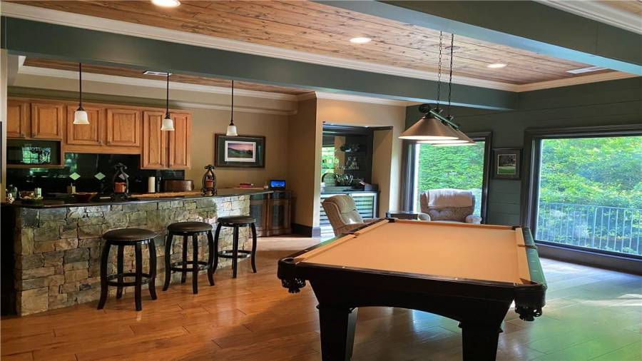 This property oozes luxury and is located in the best amenity-packed, gated, golf-cart community on Lake Lanier. This is an exceptional opportunity to live in a highly stylish executive home and also enjoy resort-like living every day! Plenty of options for fun here: Dock slip C-6 is reserved and optionally available for your boat and water toys, tennis, pickle ball, fitness center, Olympic-sized pool, walking trails, playground, full calendar of organized social events, and arguably the most-friendly neighbors of all age groups. This lovely home
