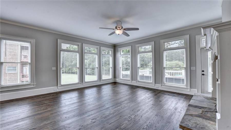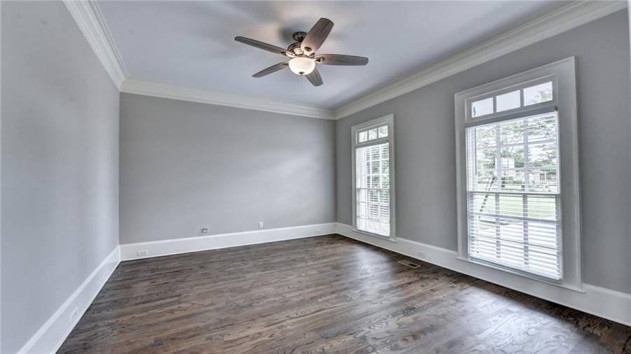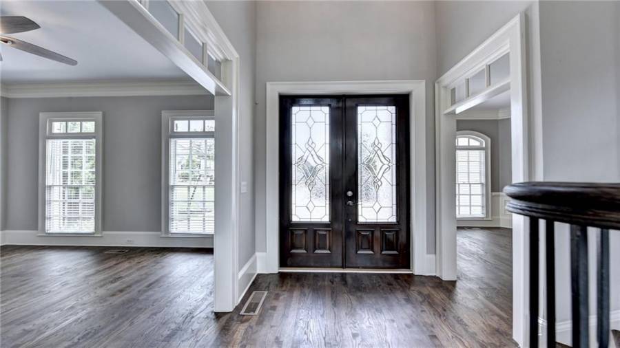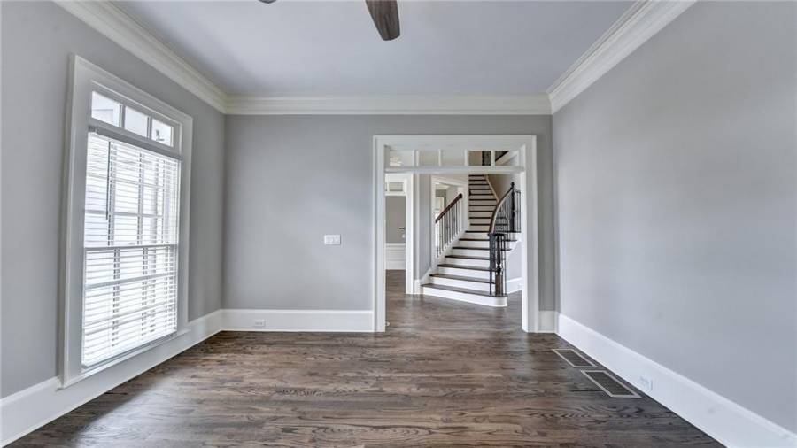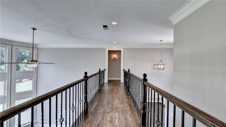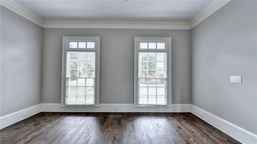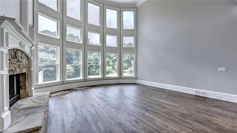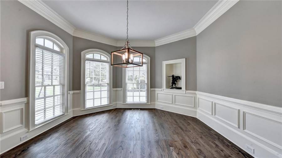 Stunning 6 bed/5.5 bath modern style, painted brick home with a professionally finished terrace level on a landscaped pool-ready lot! Refinished hardwood floors throughout the main & upstairs hallway! Enter through the double front doors to the 2 story foyer. Family-sized dining room w/bay window, crown & picture frame molding. Elegant office with crown molding. Grand 2-story family room with floor-to-ceiling windows, stone fireplace and new hardwood floor. Recently remodeled gourmet kitchen with quartz countertops, newly painted custom cabinetry, new backsplash,