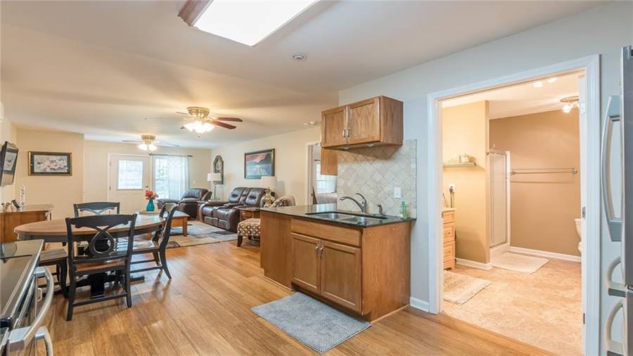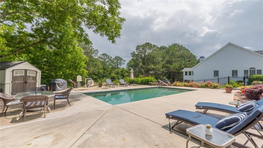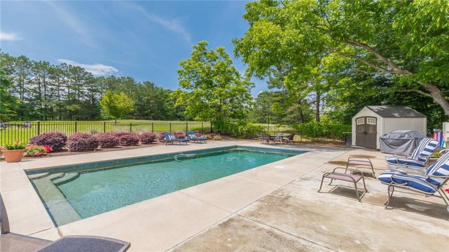 Beautiful 4 Bedroom 3 Bath Ranch Home with In-Law Suite in the Basement. Home is on Private 2+ Acres in Sought After Sharon Elementary & Loganville High Schools with inground pool, lower driveway for in-law suite, & more. Kitchen has been remodeled with stainless appliances, new granite counters, & breakfast bar. Located by the kitchen is a breakfast room, separate dining room with a view to the family room, & a sunroom opening to the outside deck. Basement in-law suite features a kitchen, full bath, breakfast room, bedroom, living room, & additional bonus space. Master
