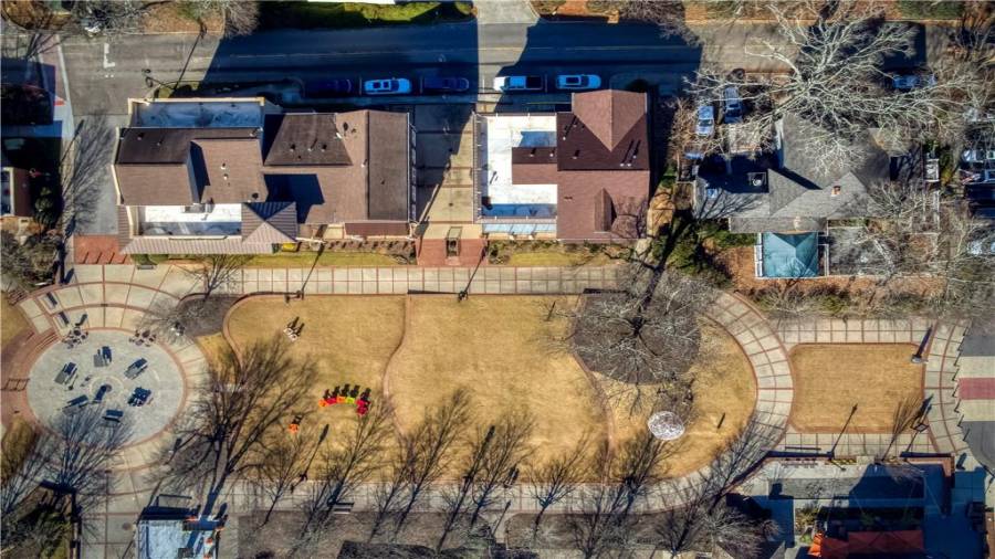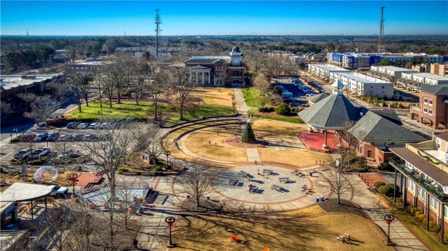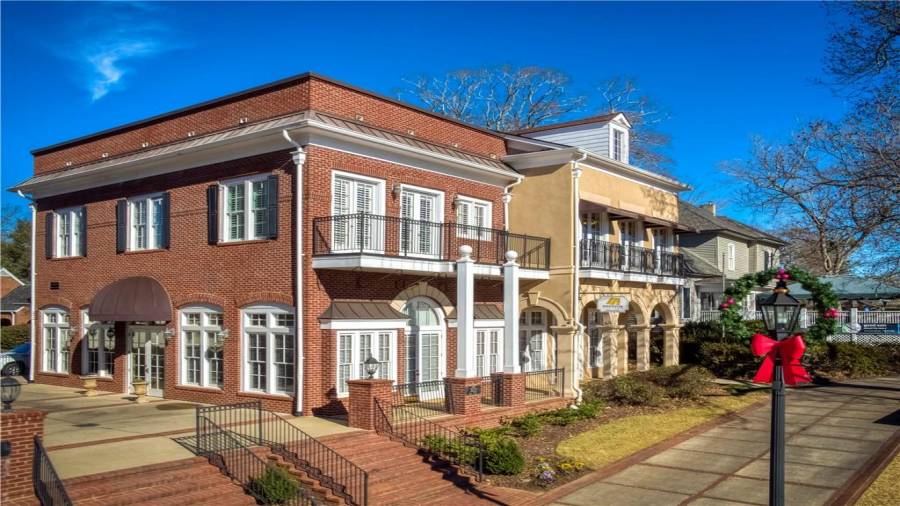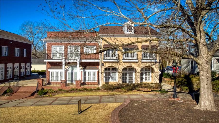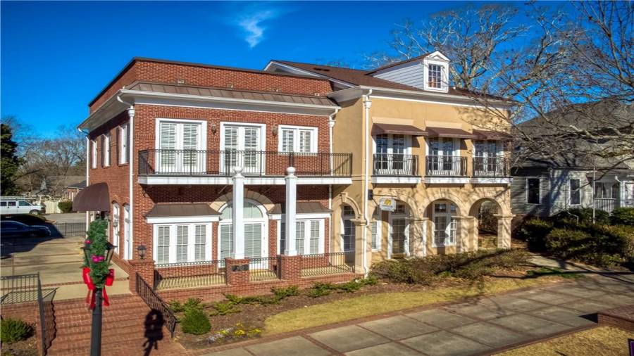 3122 Hill St is a unique mixed-use building located directly on the Town Green in Duluth’s historic downtown business district. The 2,330-sf main floor has 14′ ceilings, 3 offices, large common area, reception, 2 half baths, fulfillment and break rooms. Recently used as an office but also suitable for retail. 2nd-floor has 2 residential condos, 1,252 and 1,153 ft2, each 2BD/2BA with gas cooktops and fireplaces, ceiling fans, shutters, garage parking for 1 car each. Great live/work opportunity for owner-occupied business owner or lease-income opportunity for an investor.