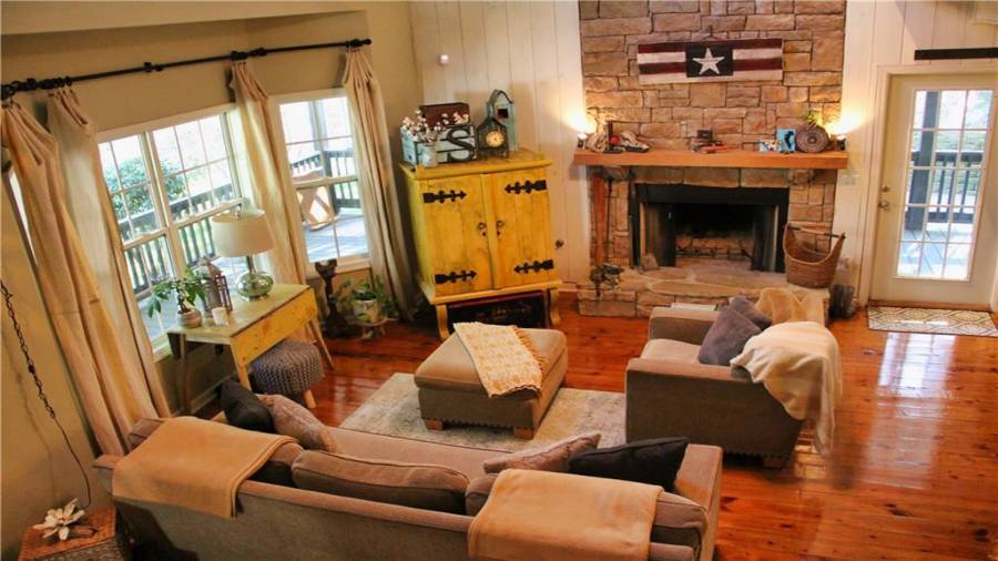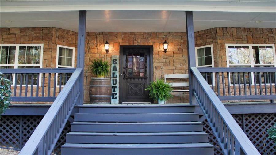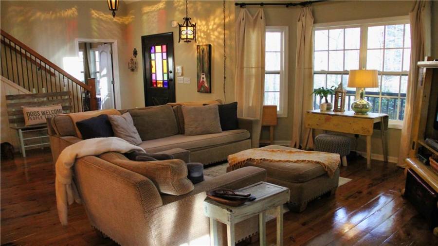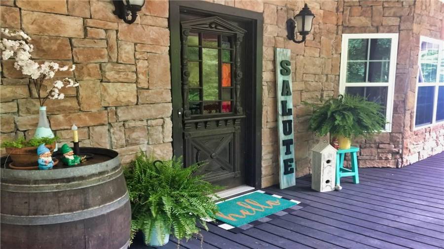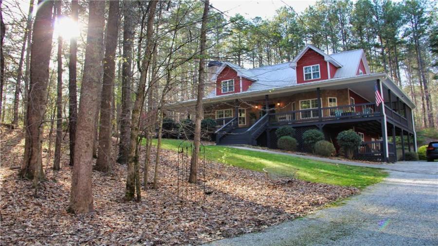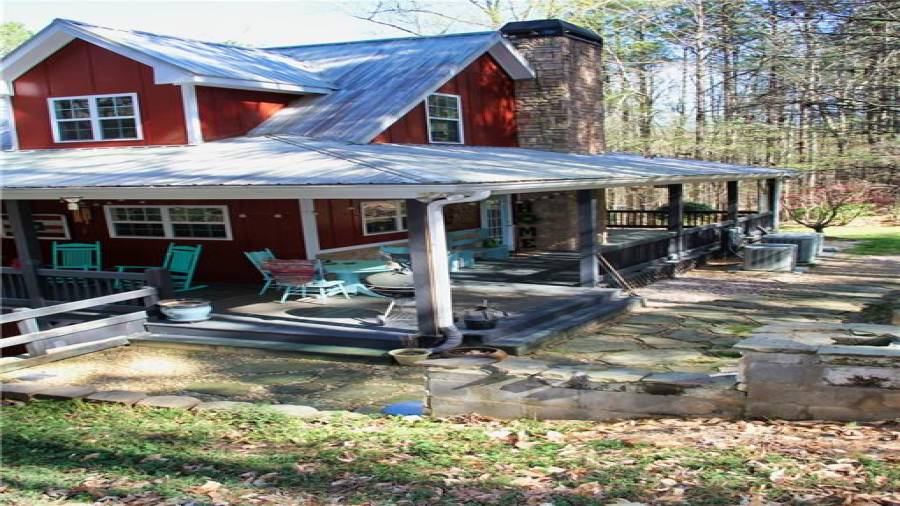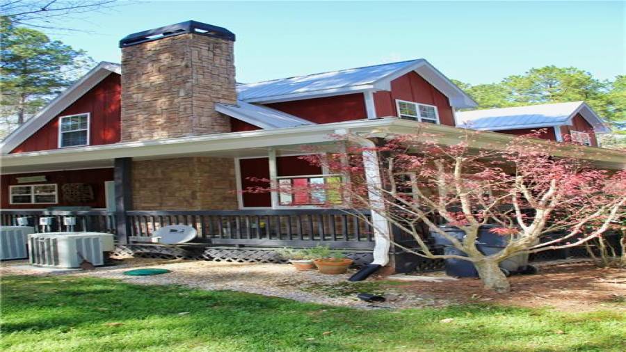 BACK ON THE MARKET!rnCountry living at it’s best in this rustic, farmhouse, custom home nestled on two acres with plenty of privacy. This home features a wraparound porch and a good deal of space for entertaining and relaxing. The main level of this home includes an open floor plan with a farm kitchen that has a commercial Jenn-Air range with 4 propane burners and a side-grill. A den with a stone, wood burning fireplace, and vaulted ceilings. There is a large master bedroom with a bath that has a clawfoot tub and stand up shower.