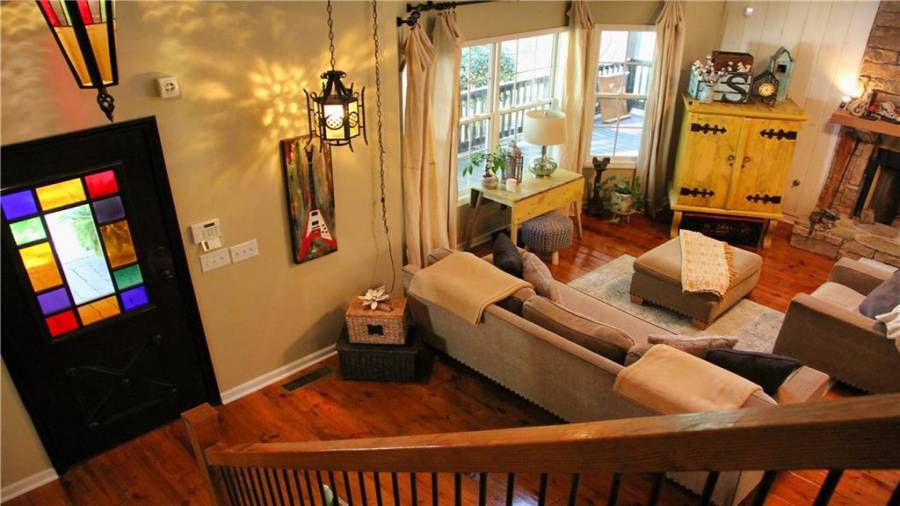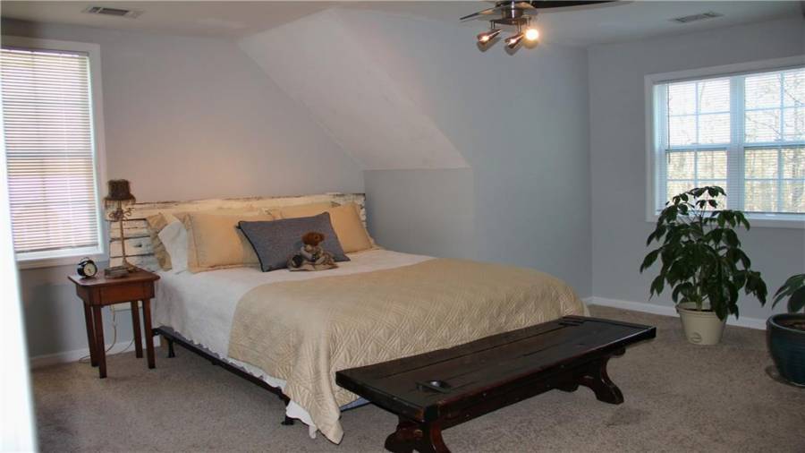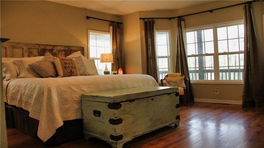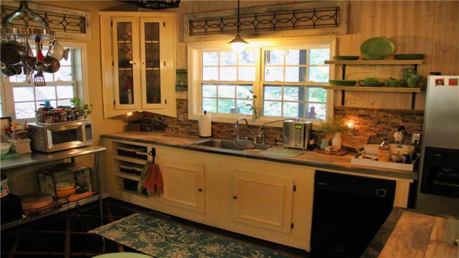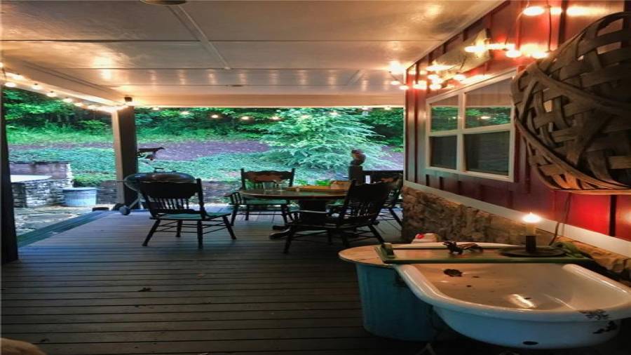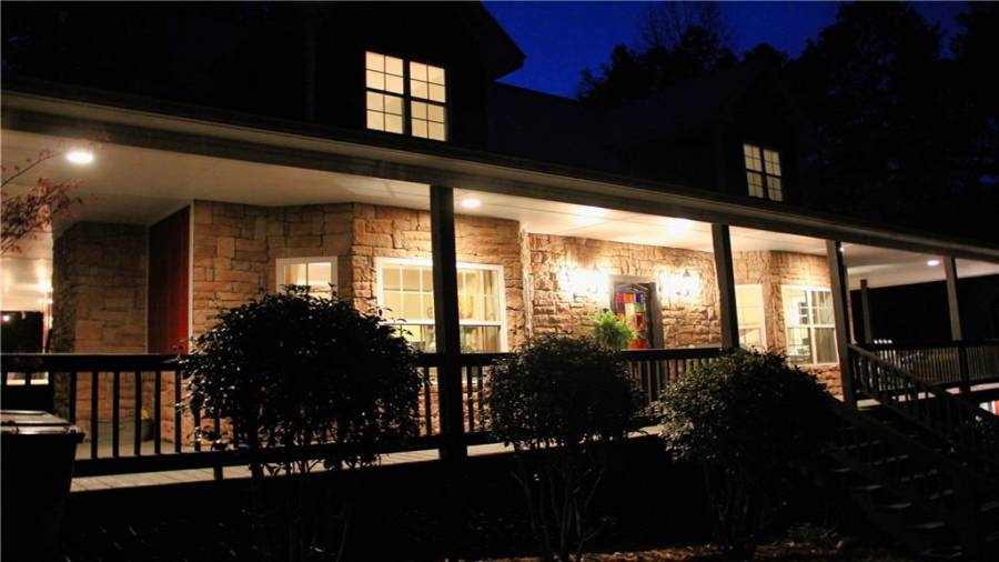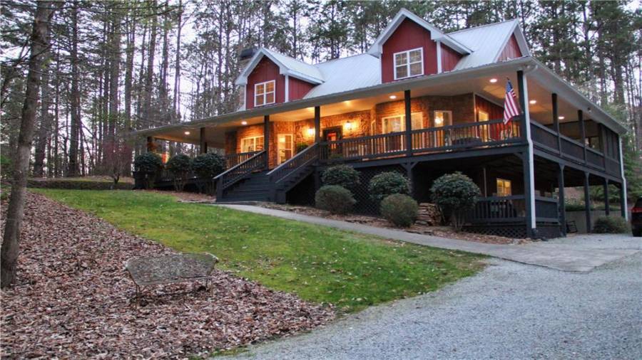 BACK ON THE MARKET!rnCountry living at it’s best in this rustic, farmhouse, custom home nestled on two acres with plenty of privacy. This home features a wraparound porch and a good deal of space for entertaining and relaxing. The main level of this home includes an open floor plan with a farm kitchen that has a commercial Jenn-Air range with 4 propane burners and a side-grill. A den with a stone, wood burning fireplace, and vaulted ceilings. There is a large master bedroom with a bath that has a clawfoot tub and stand up shower.