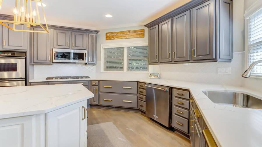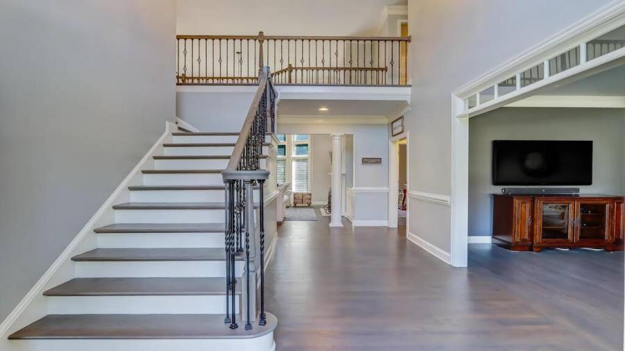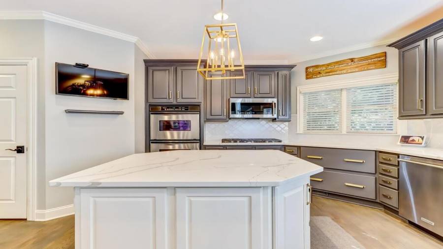 Located in the Lake Forest subdivision of Hamilton Mill, this stunning home has it all! All 3 levels offer attention to detail and quality. The main level boasts refinished hardwood floors with custom stain, updated full bath, bedroom/office, separate living and dining as well as 2 story great room and a stunning kitchen remodeled with quartz counters, gray painted cabinets with soft-close cabinet doors, updated smart lighting, stainless steel appliances, and Frigidaire Pro refrigerator. The top level features an oversized owner’s suite with large bathroom and closet.