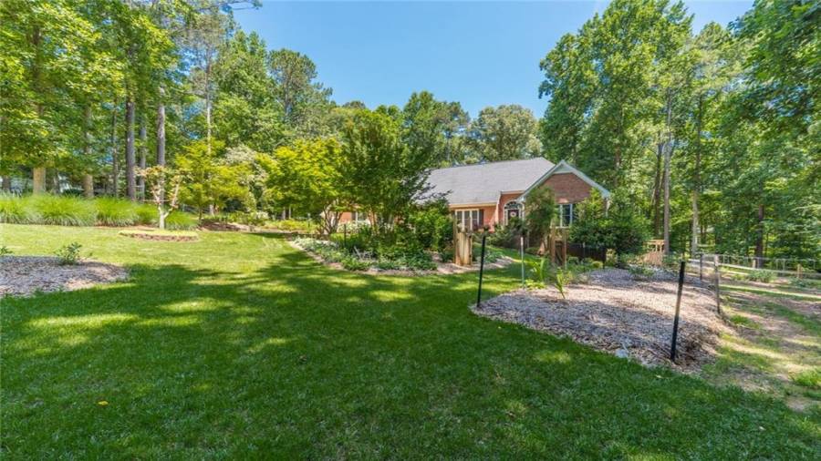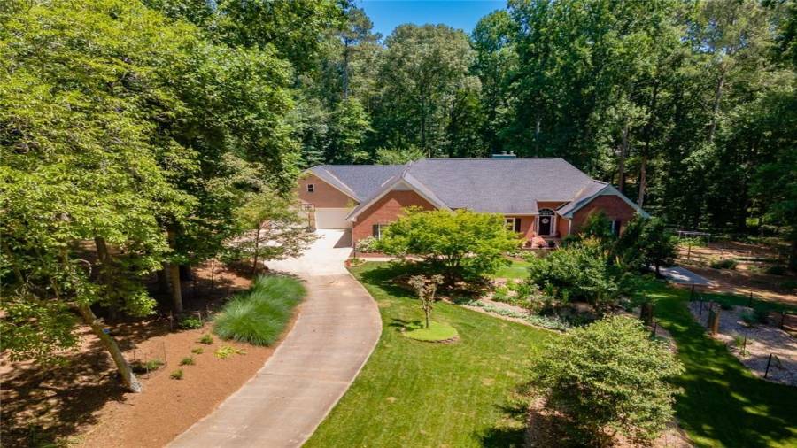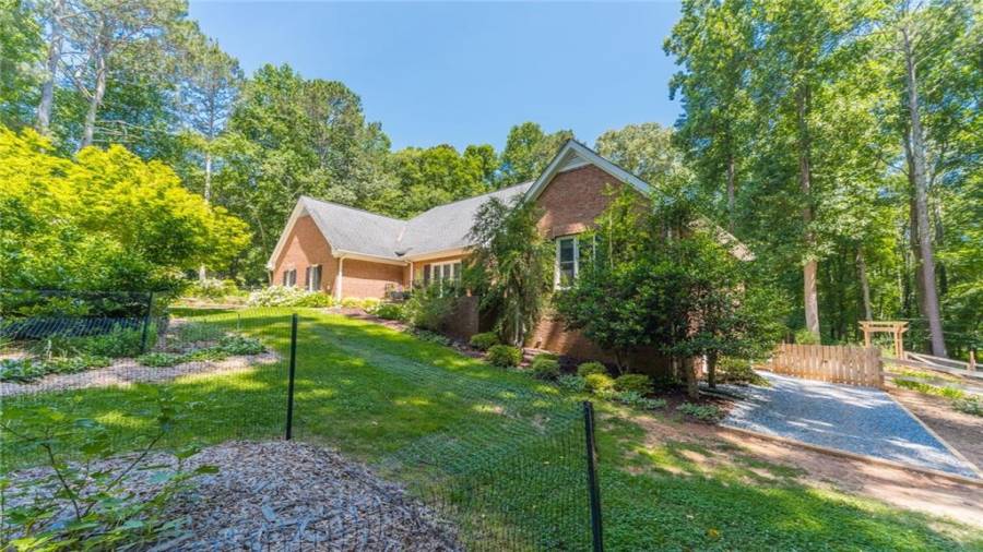 A gardeners dream home!!! This immaculate home is everything you have been looking for! Over 2 acres only seconds to Milton but still in Cherokee Country. Come down the long driveway and see gorgeous trees, shrubbery, and flowers surround you. Beautiful brick ranch home has full finished basement, 4 car garage with massive loft above that is perfect for storage, or can be finished for office/ flex space. Enter into the home and see high ceilings, lovely hardwood floors, bright and airy rooms. Kitchen and dining look onto living areas with fireplace that is framed by