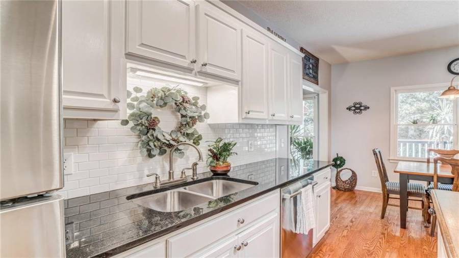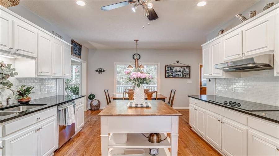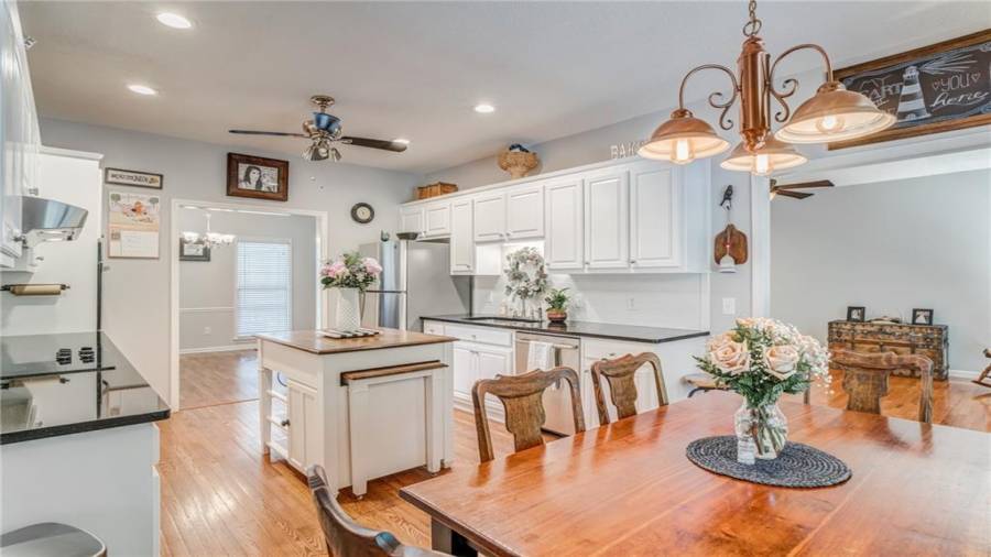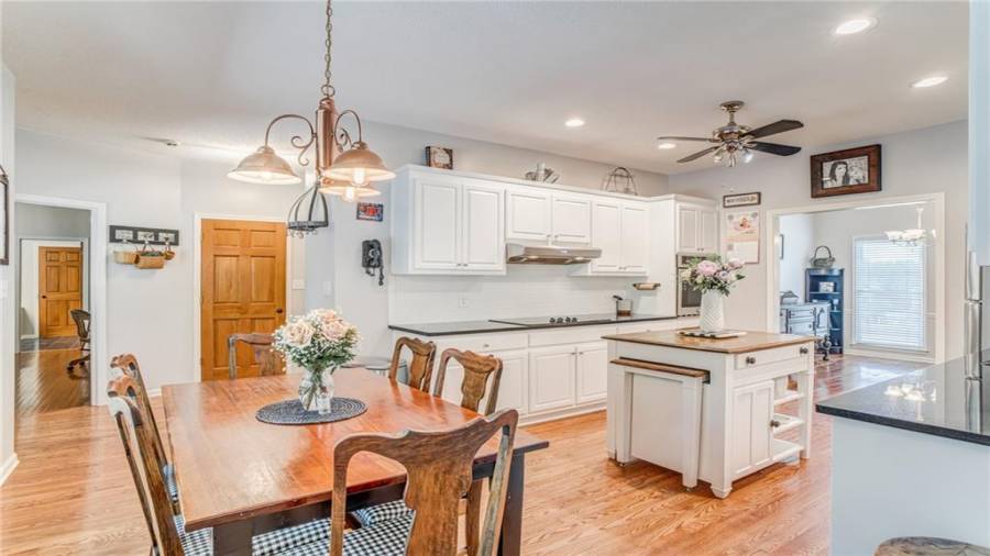 : Breakfast Room, Cabinets White, Kitchen Island, Pantry, Stone Counters