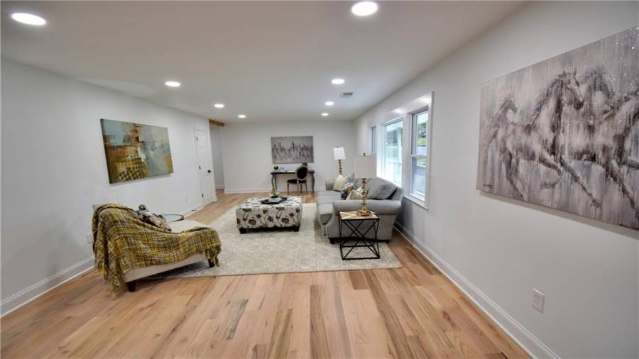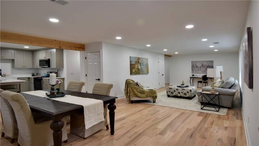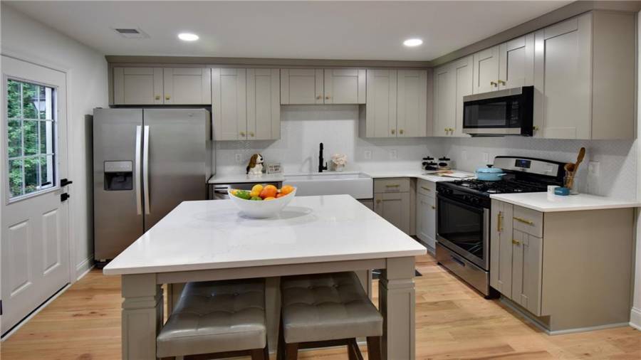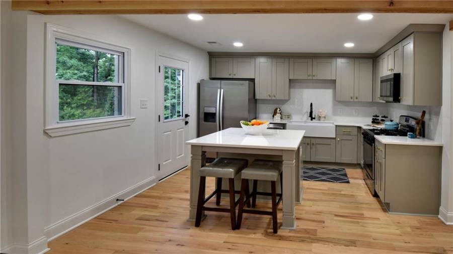 WOW!!!! Amazing! This newly renovated home radiates beauty and cleanliness! In sought after East Cobb this ranch home has all your must have! The schools in the area are great. The home is completely renovated from the bottom up, inside and out! Ready to move in! This includes new hardwood flooring throughout the house and a desired master on “MAIN” floor. This property includes an open kitchen with new cabinets, quartz counter tops, new appliances, new deck, driveway, insulation, electrical and pluming, paint, epoxy garage, retaining wall, fence and even a new