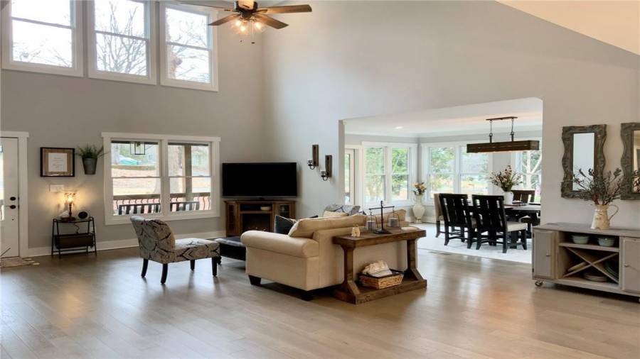 Fantastic modern farmhouse home on spacious corner lot w/ driveway that wraps around the rear of home leading to 2 full-size garages & 1 small garage perfect for golf cart and/or lawn equipment! Gorgeous 2-story LR provides views to DR, Kitchen, & upper balcony/play area. Enormous kitchen boasts 48” triple oven induction range, built-in microwave, dishwasher, refrigerator, farmhouse sink & faucet, leathered granite counters, & marble backsplash. Pocket door leads into laundry room w/ 2nd pantry cabinet, custom wood shelves w/ Shiplap wall, & beautiful wood counter.