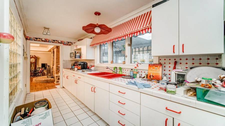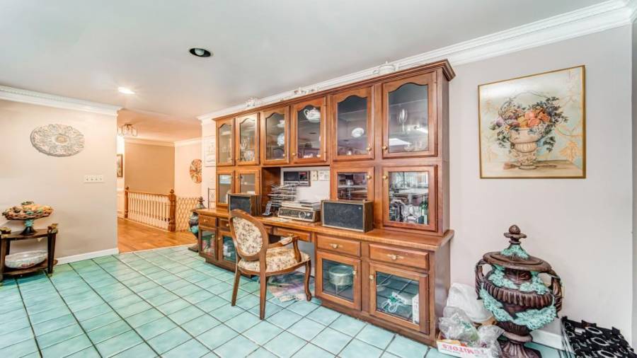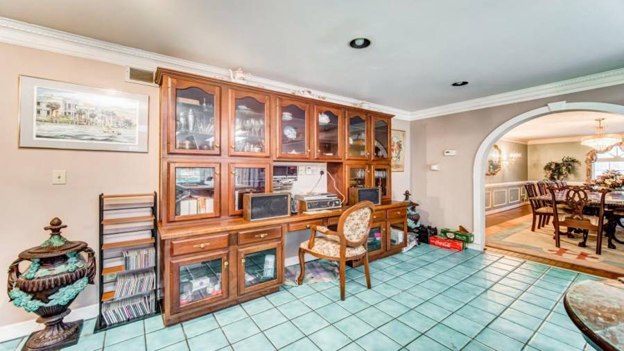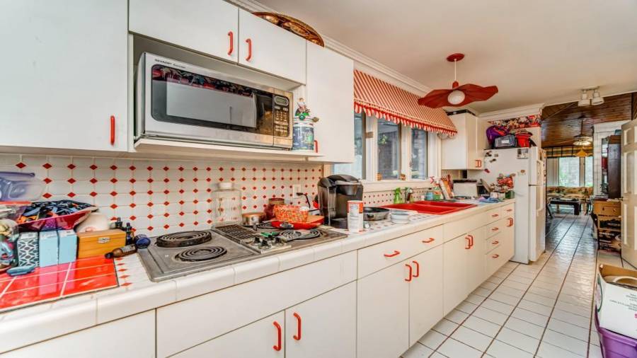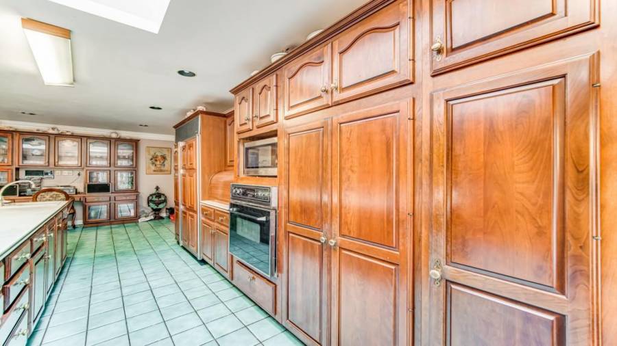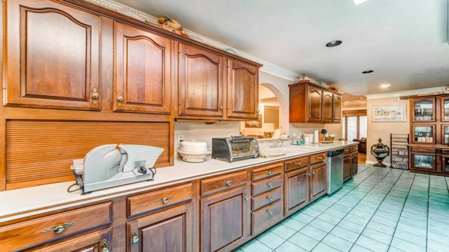 : Breakfast Bar, Cabinets Stain, Eat-in Kitchen, Cabinets White, Kitchen Island, Pantry, Second Kitchen, Other, Solid Surface Counters, Tile Counters