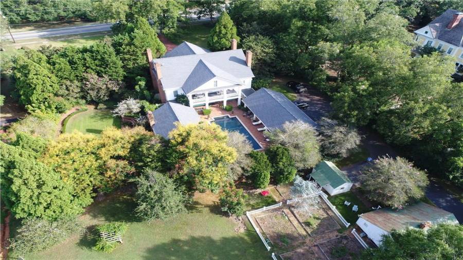 Southern charm meets modern-day luxury! Historic reproduction with cir. 1889 guest cottage on 1.8 acres lot in Madison, GA’s famed historic district. This 10,000+ sq ft home boasts 8 bedrooms, 7 full and 2 half baths with pool, porches, formal gardens, courtyard, orchard, huge master-on-main w/ vaulted ceilings, his/her closets. Full apartment on 3rd floor, plus finished daylight basement feat. theater, gym, wine cellar, home office, rec room/billiards area. Front and rear driveways, designer kitchen, reclaimed heart pine floors, built-ins, 4-car garage and much more!