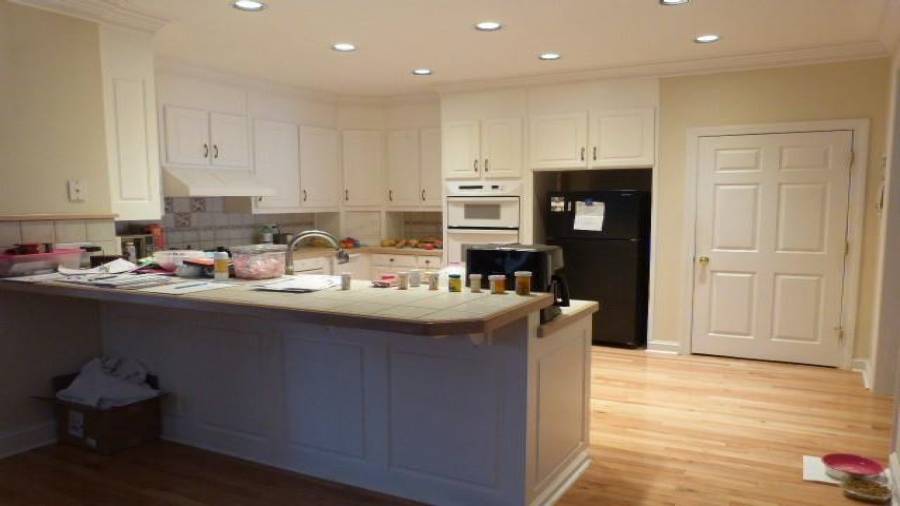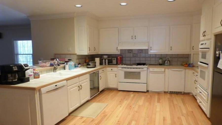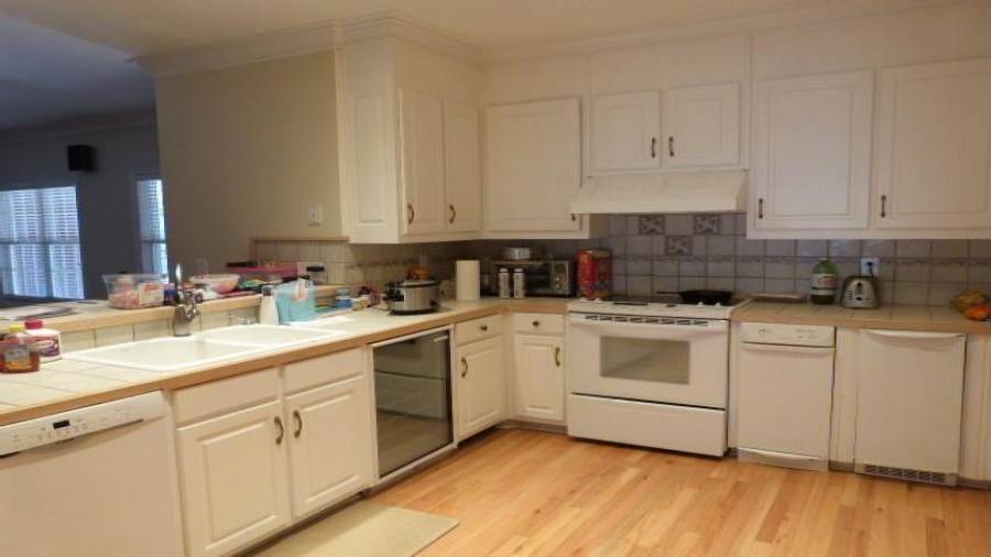 : Breakfast Bar, Eat-in Kitchen, Cabinets White, Pantry, View To Family Room, Other, Tile Counters