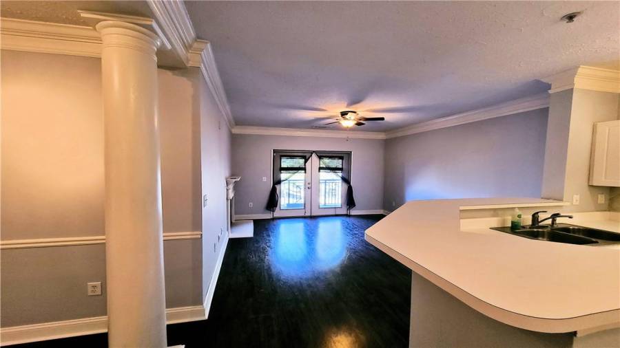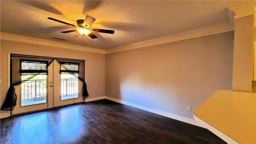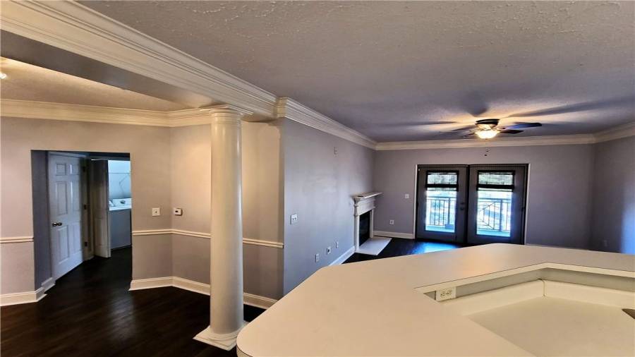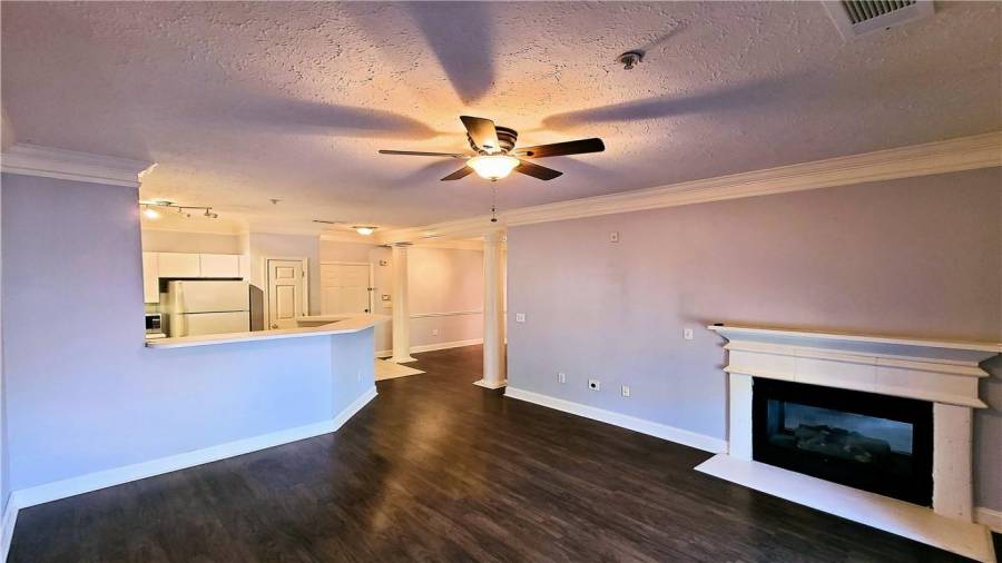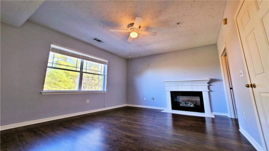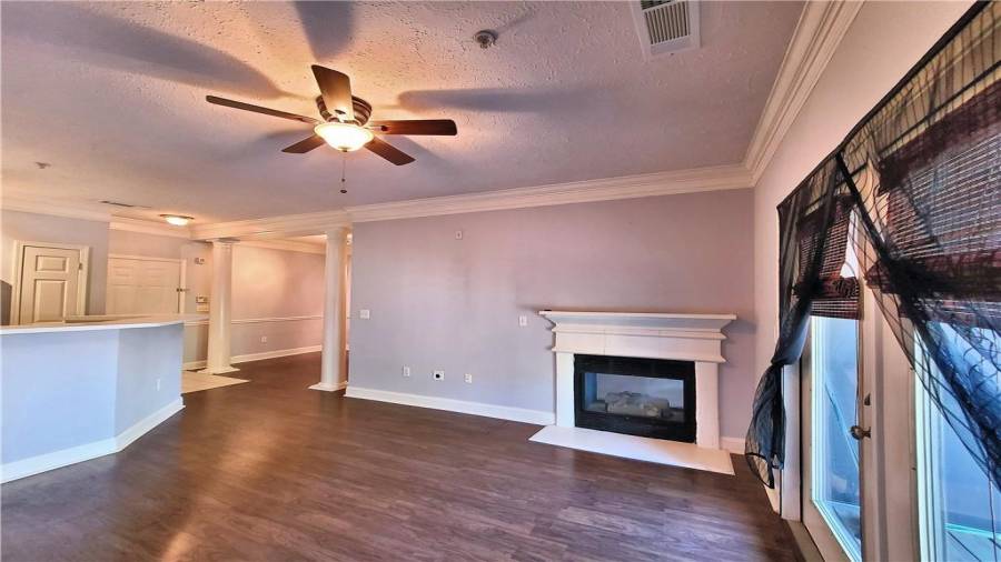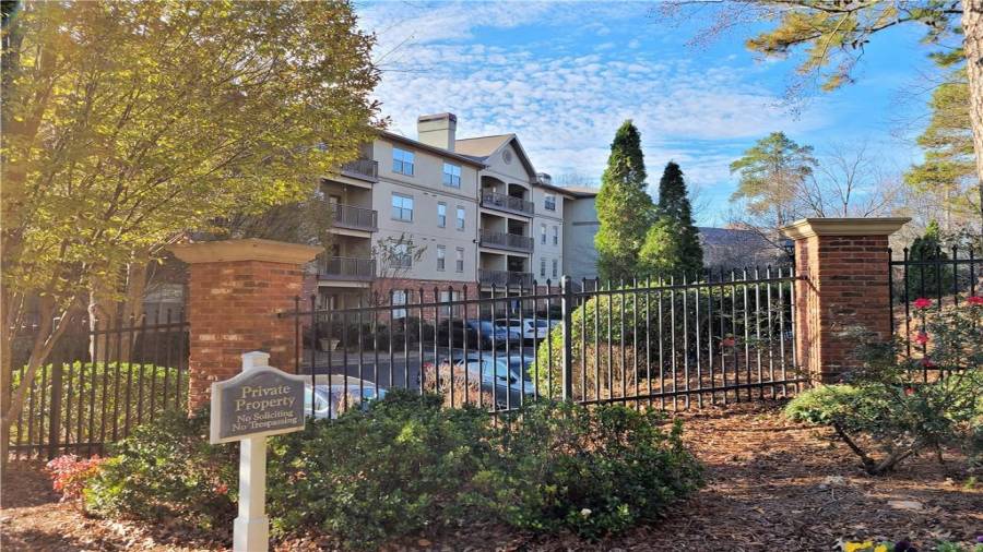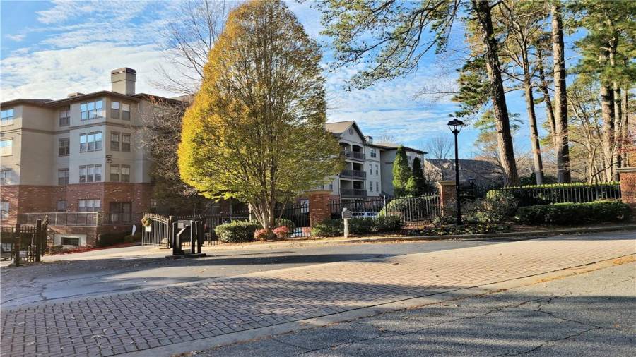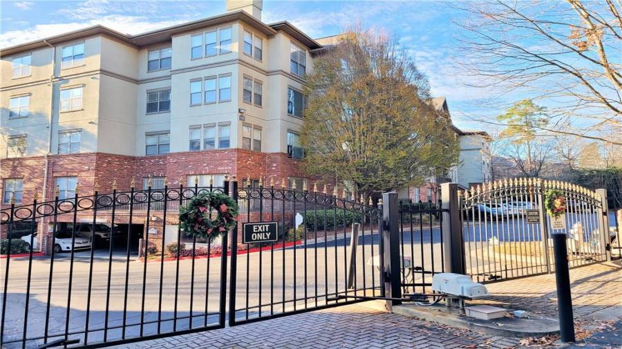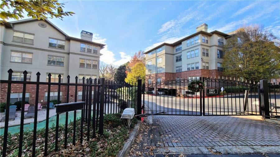 TOP FLOOR Spacious 1 BD & 1 BA /1 condo is located in highly sought after gated community, inside the perimeter and close to GA400, I-285, Perimeter Mall, Buckhead, Northside Hospital, all the best dining and entertainment and so much more. Hardwood floors throughout open floorplan and walk-out balcony off the living room offers the great place for entertaining. Dual sided fireplace opens onto living room and master bedroom! Generously sized Bathroom had been updated with new vanity and new tile. Laundry closet in unit. NEW Heat Pump unit in 2018.
