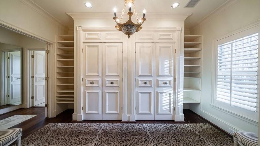 : Walk-in Closet(s), Beamed Ceilings, Entrance Foyer 2 Story, His And Hers Closets, Bookcases, High Ceilings 10 Ft Main, Wet Bar