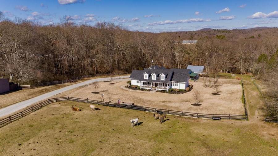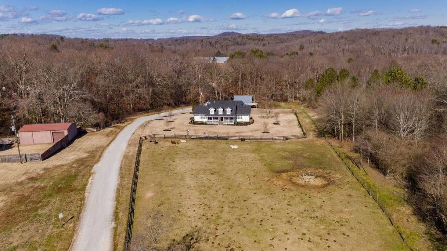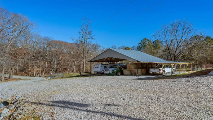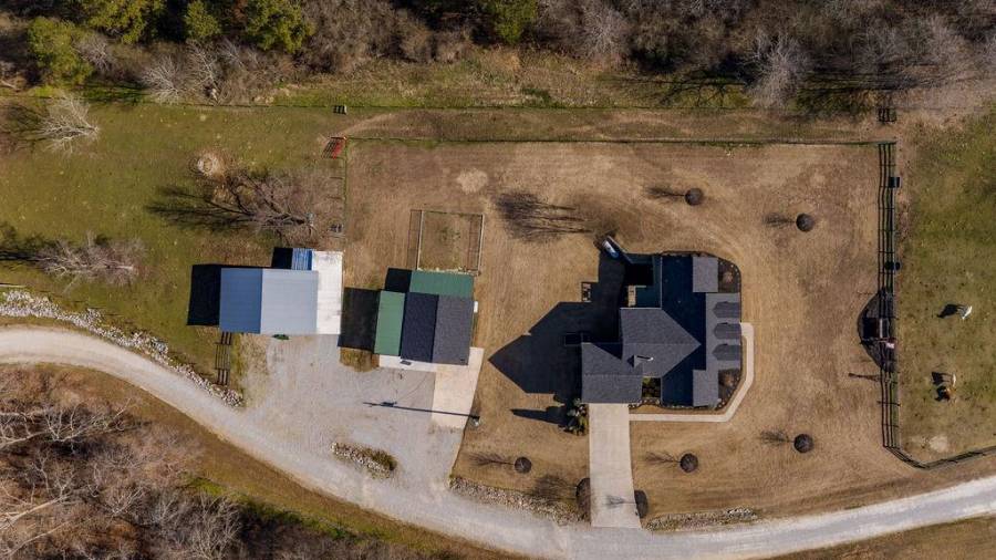 PRIXE DROP DUE TO SOME ACREAGE BEING SOLD SEPARATELY LISTING NOW INCLUDES 8.85 acres with fenced pasture property, creek, private road, house and out buildings. The huge pole barn is great for RV parking or hay storage or easily converted to a multiple stall barn. Remaining property would be sold separately. Chicken houses I. Adjacent property are being removed. Property is stunning and private with fenced pastures down to the meandering to the creek.