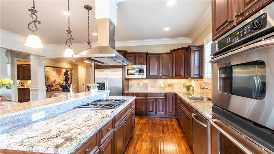: Gas Range, Gas Water Heater, Refrigerator, Dishwasher, Disposal, Microwave, Double Oven, Gas Cooktop, Electric Oven, Washer, Dryer, Range Hood