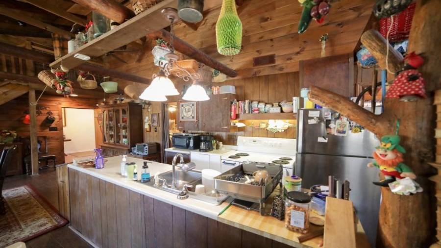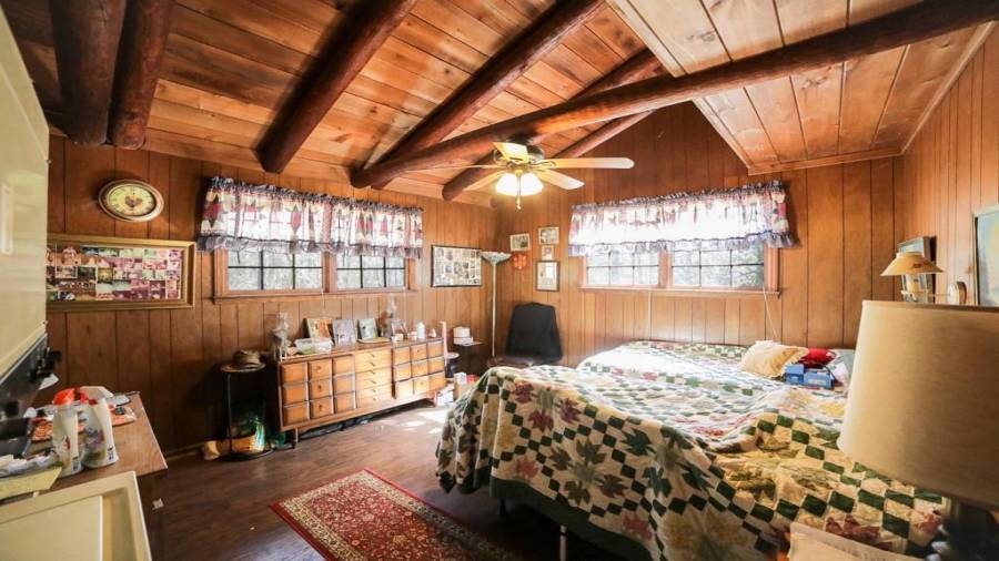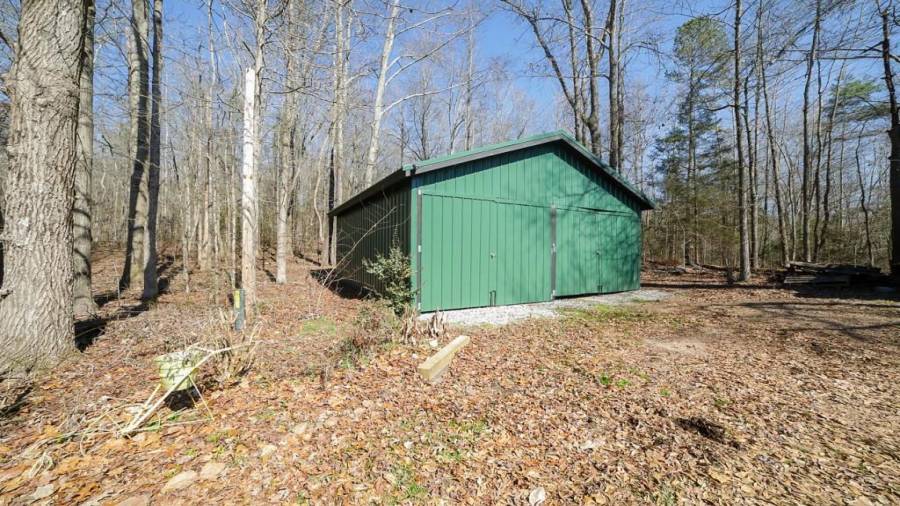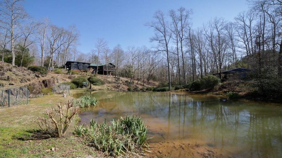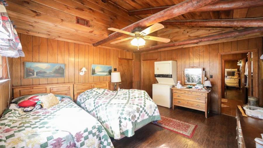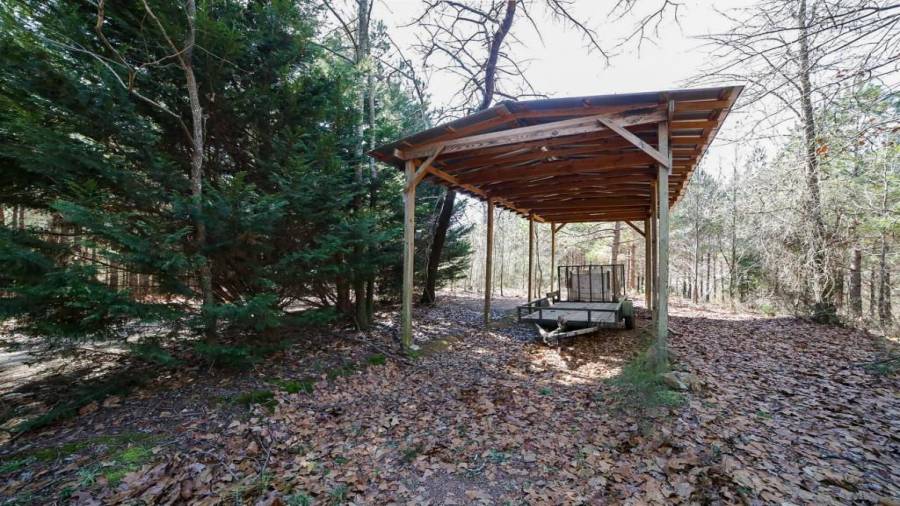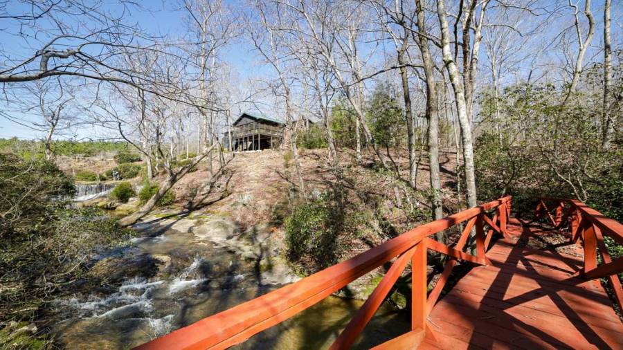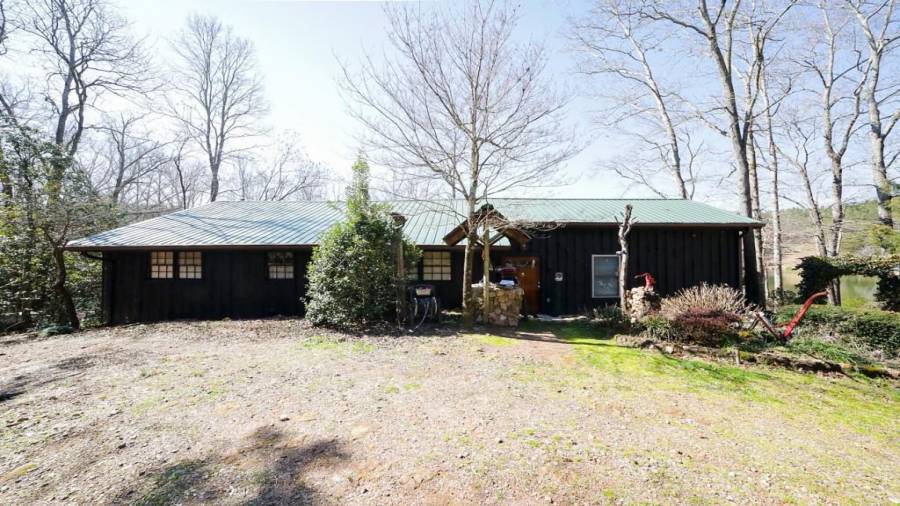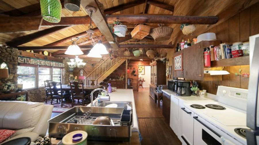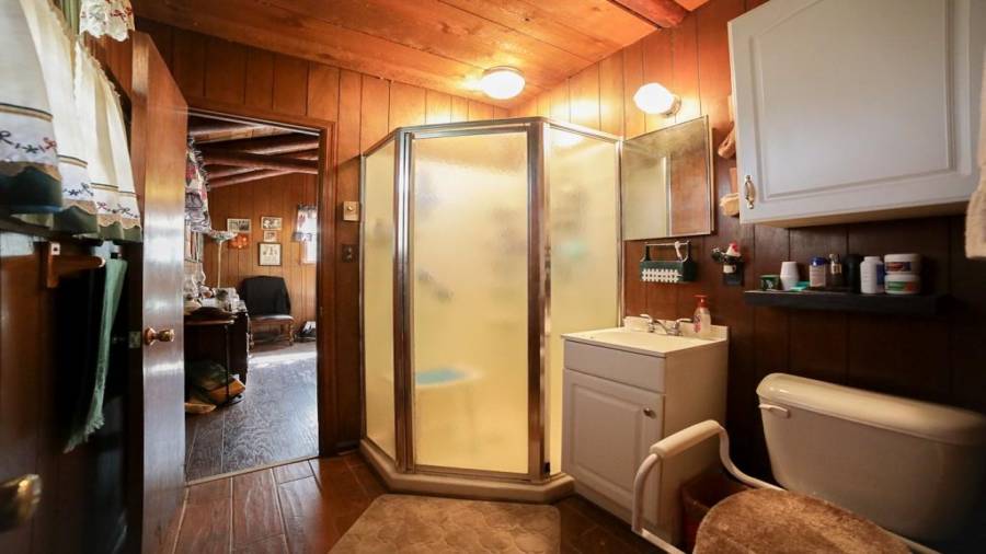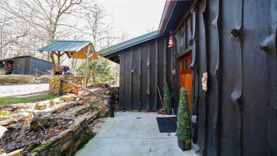Approaching this 62 acre tract, you are received by the front gate guiding you in. As you travel along, notice the barn, RV pole shed, & park signs. Then you get a glimmer of the sparkling lake & cabin. As you approach the cabin you can hear the rushing of the waterfall. Yes, this property comes with a waterfall! Prior to entering, notice the detached garage/workshop, storage shed & old stone well. Custom built in 1970 & updated with an additional 2 beds & 2nd floor bonus/play room. Wood doors accented with antique hardware, beamed vaulted ceilings, exposed rock wall