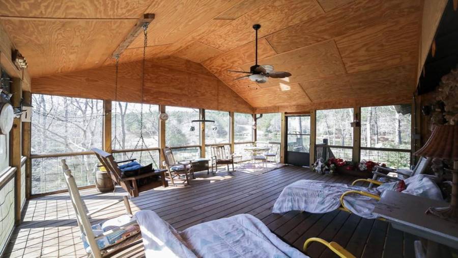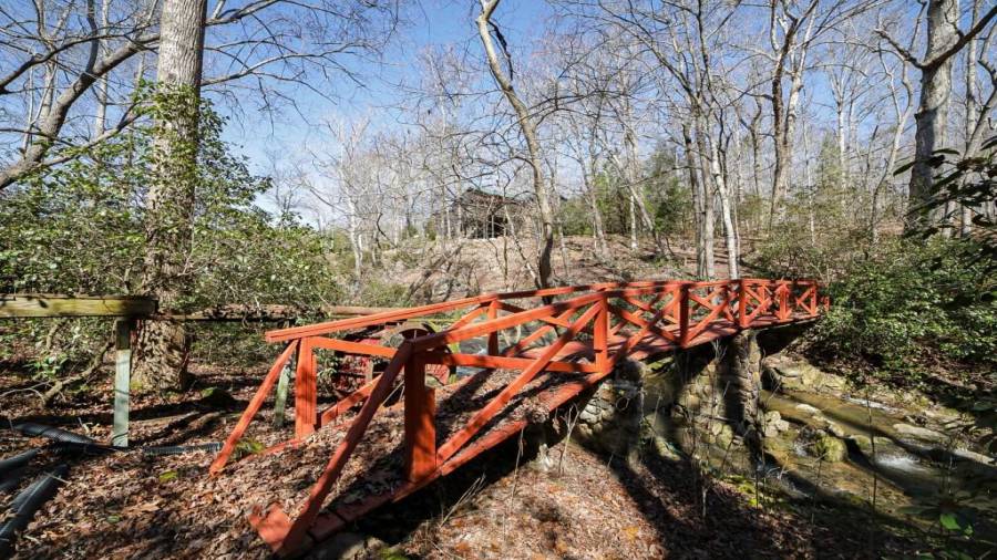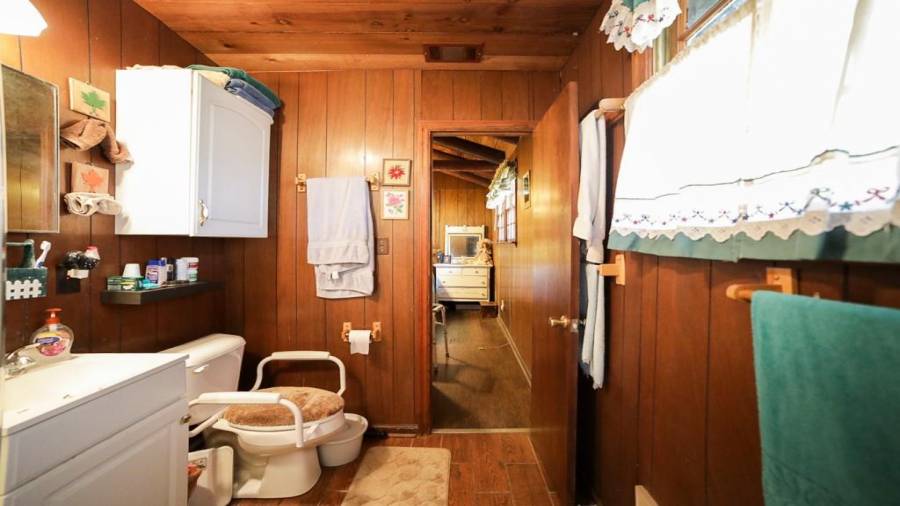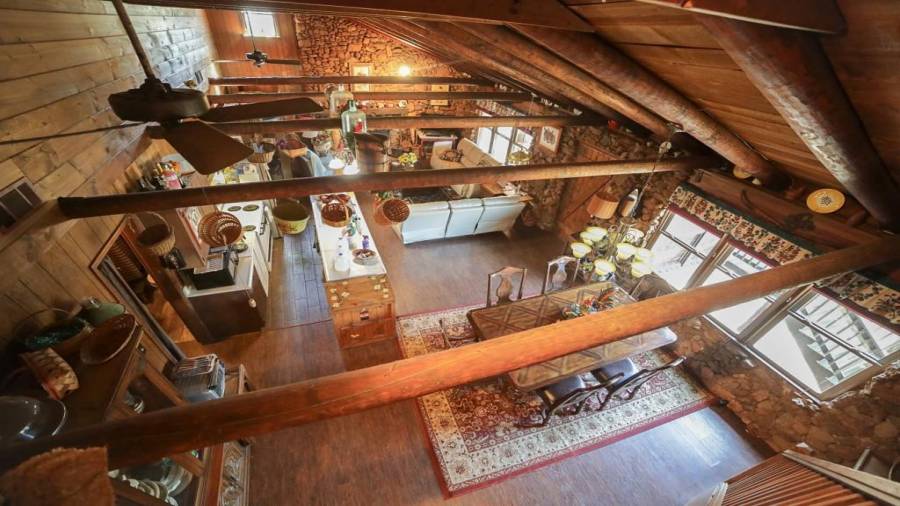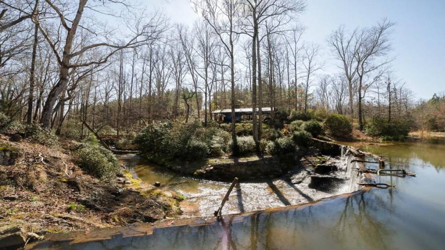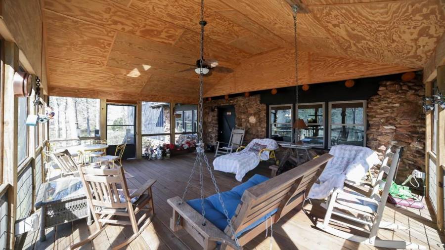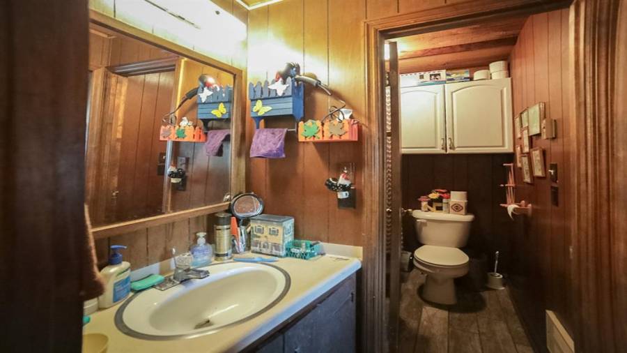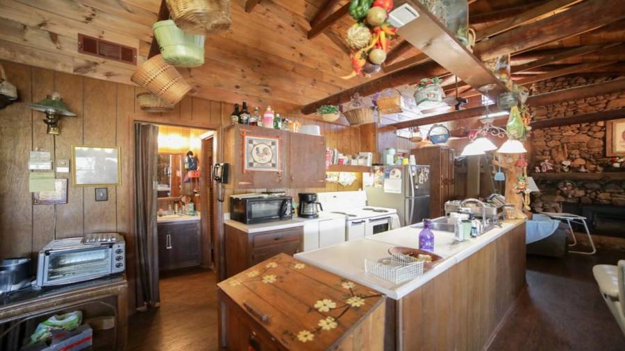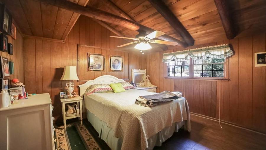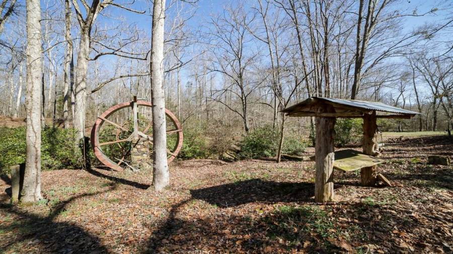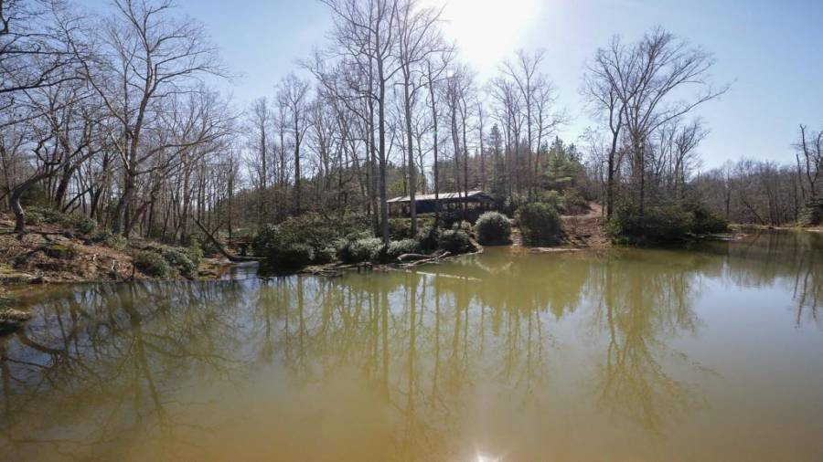 Approaching this 62 acre tract, you are received by the front gate guiding you in. As you travel along, notice the barn, RV pole shed, & park signs. Then you get a glimmer of the sparkling lake & cabin. As you approach the cabin you can hear the rushing of the waterfall. Yes, this property comes with a waterfall! Prior to entering, notice the detached garage/workshop, storage shed & old stone well. Custom built in 1970 & updated with an additional 2 beds & 2nd floor bonus/play room. Wood doors accented with antique hardware, beamed vaulted ceilings, exposed rock wall