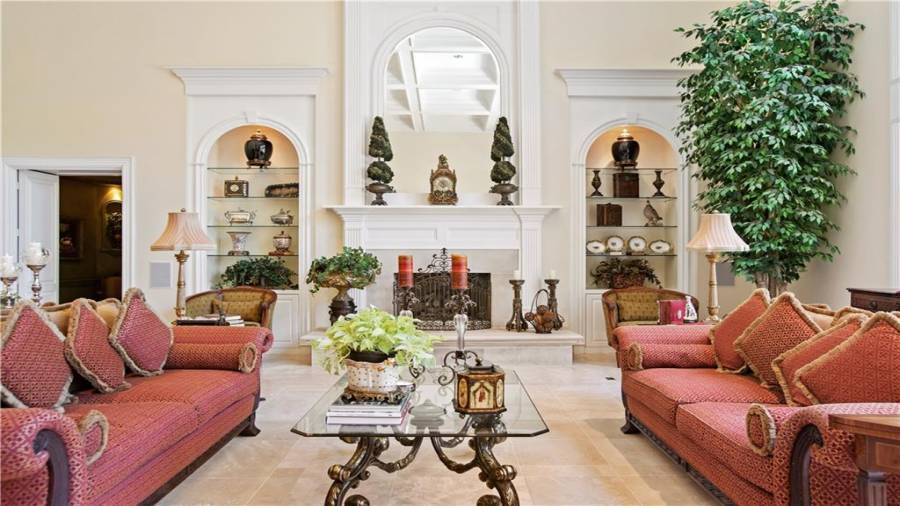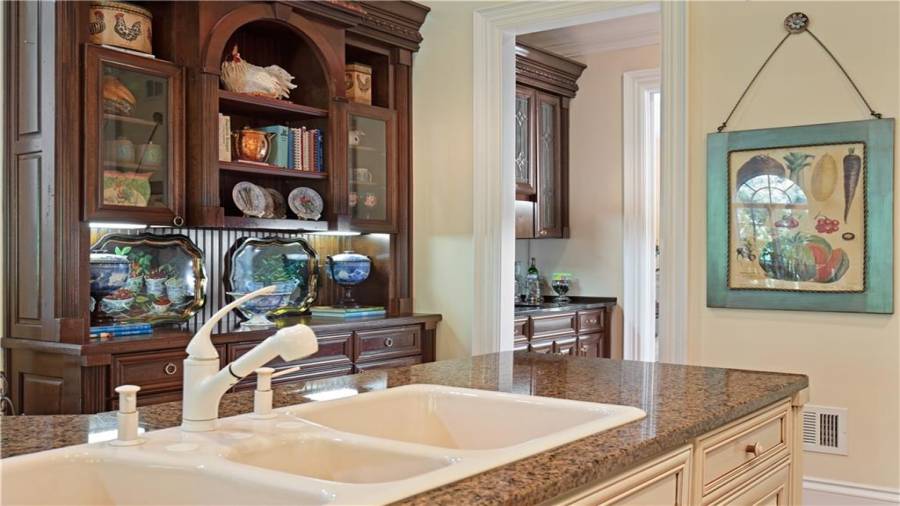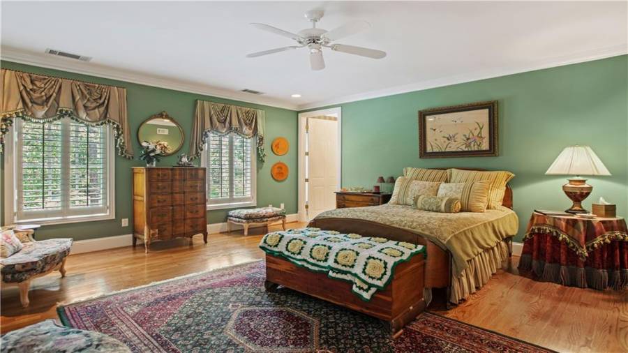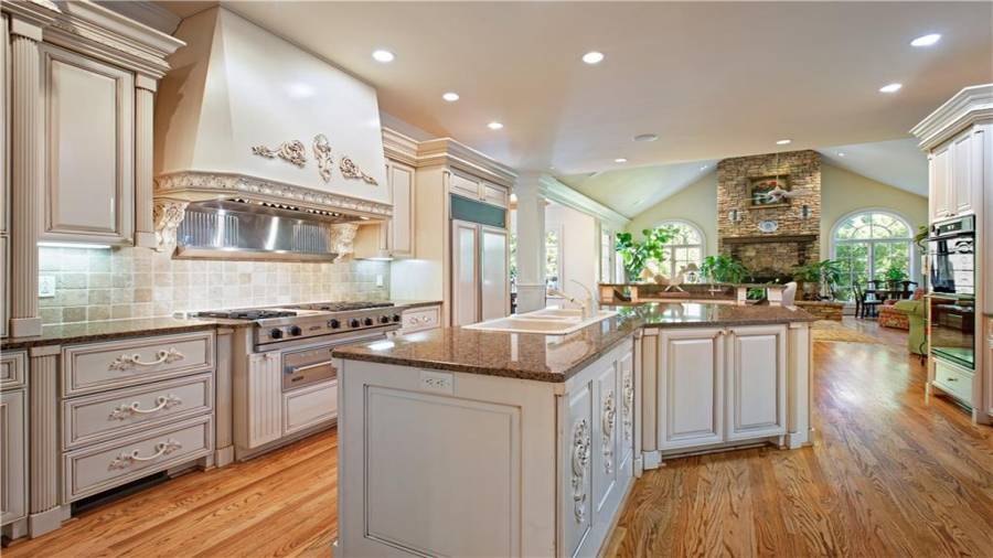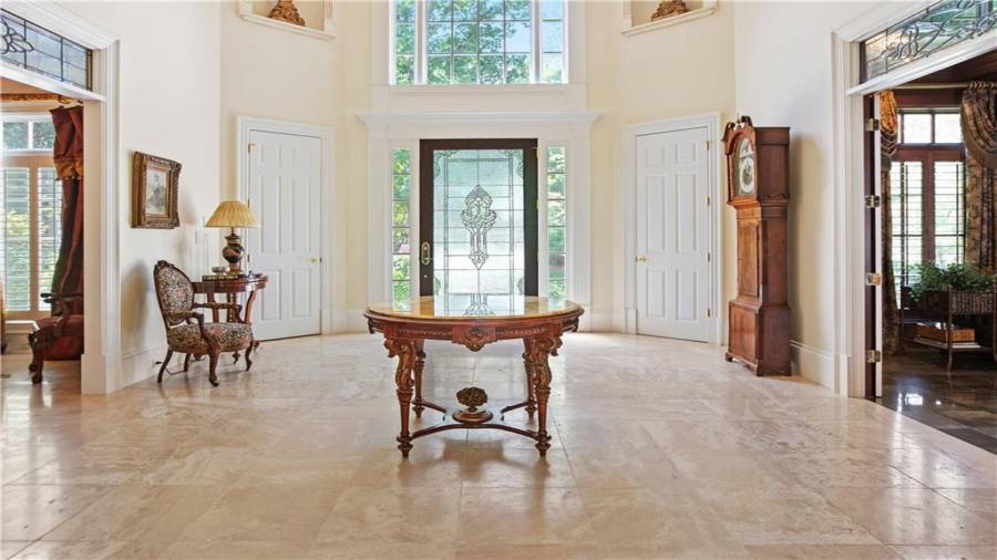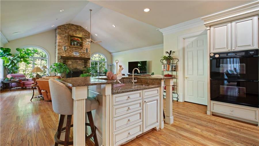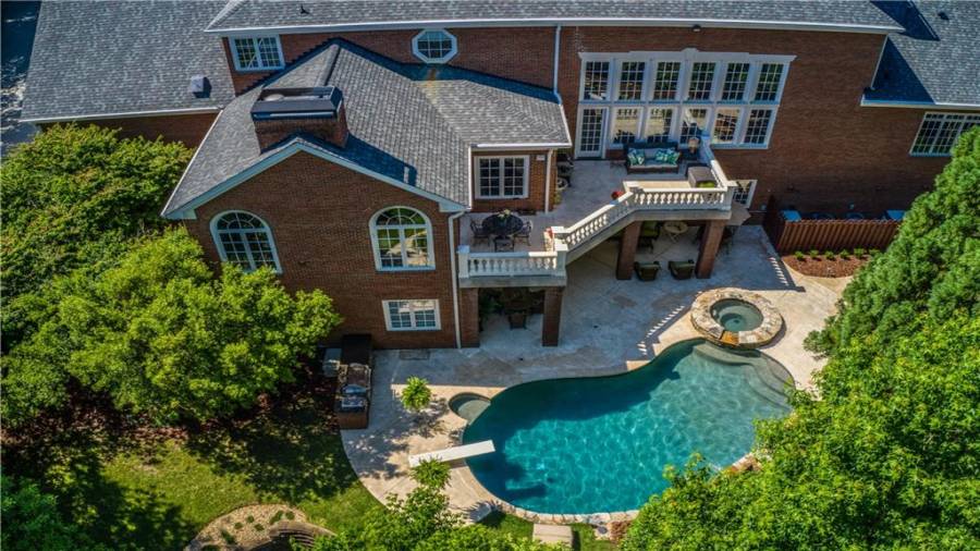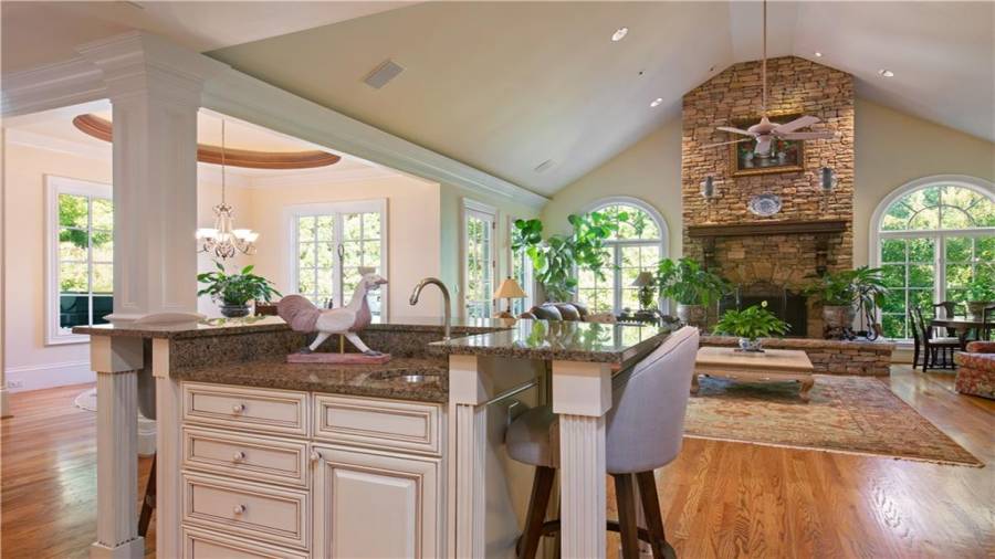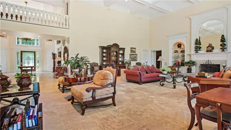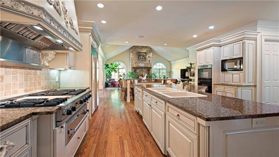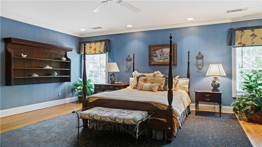 A private oasis perfect for quarantine! Double gated driveway. 12′ ceilings on main. 4 car garage on main. Exquisite owner’s suite located on main level. Includes enormous master closet with glam area. Oversized master bedroom has a sitting area, fireplace, built in bookshelves, and vaulted ceilings. Inviting French doors open into the luxurious master bathroom. Master bathroom has limestone flooring throughout and includes two water closets, two vanities with granite countertops, two person shower with six multi-level shower heads, 6′ Kohler two person jetted tub.
