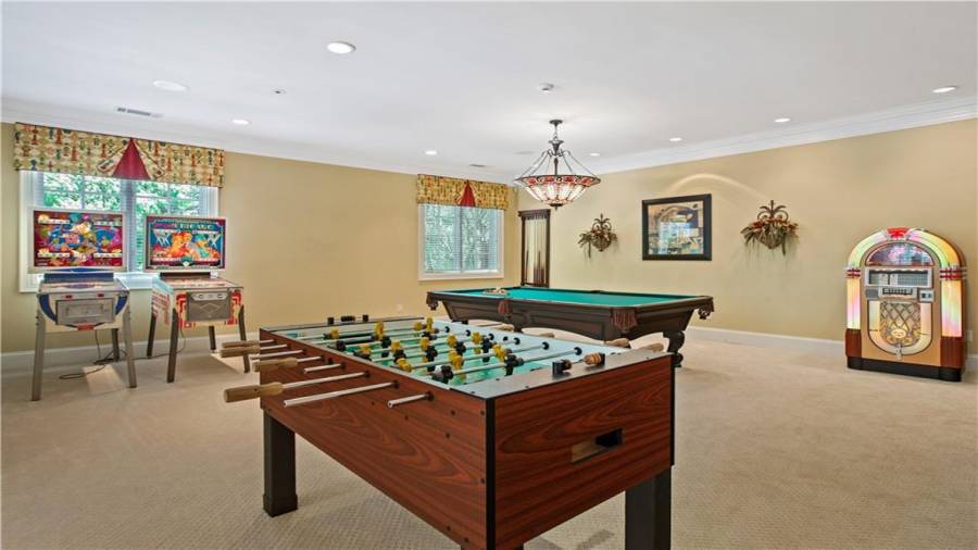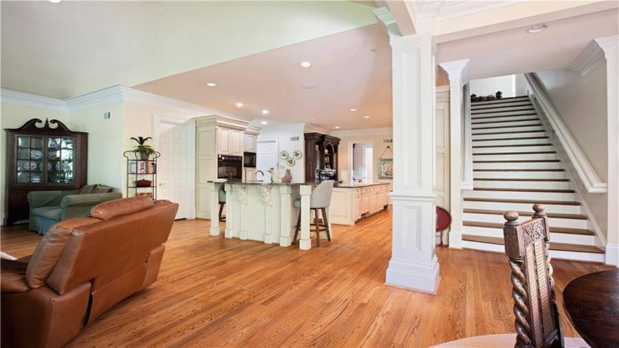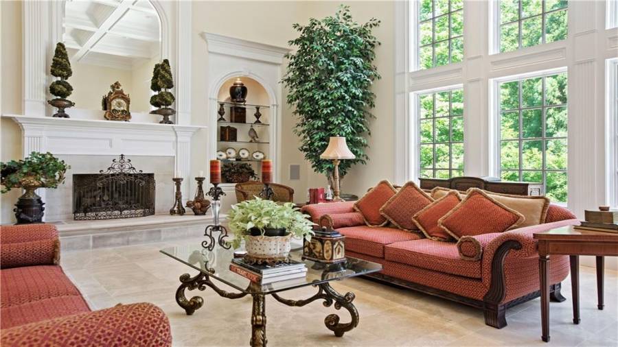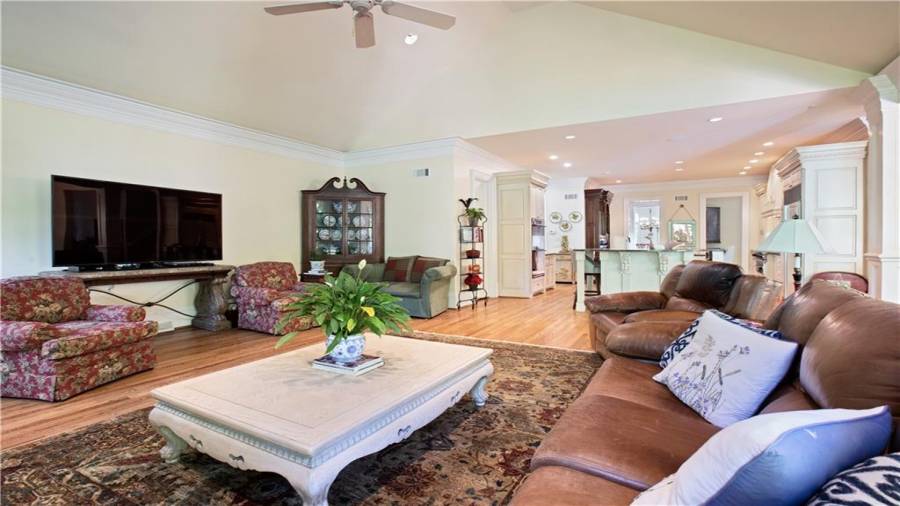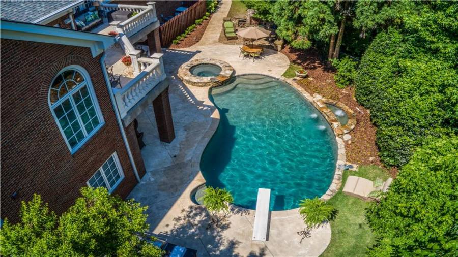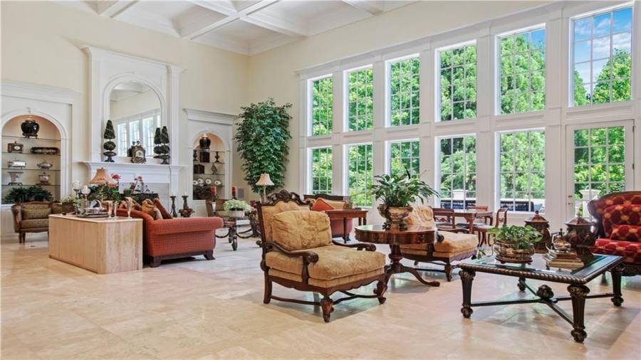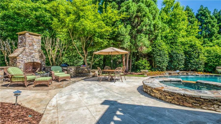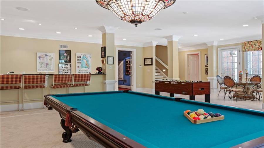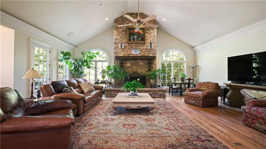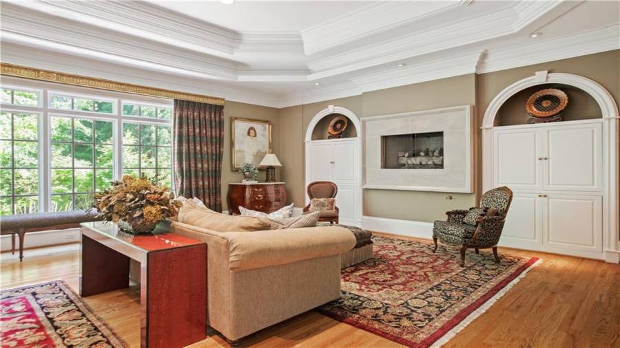 A private oasis perfect for quarantine! Double gated driveway. 12′ ceilings on main. 4 car garage on main. Exquisite owner’s suite located on main level. Includes enormous master closet with glam area. Oversized master bedroom has a sitting area, fireplace, built in bookshelves, and vaulted ceilings. Inviting French doors open into the luxurious master bathroom. Master bathroom has limestone flooring throughout and includes two water closets, two vanities with granite countertops, two person shower with six multi-level shower heads, 6′ Kohler two person jetted tub.