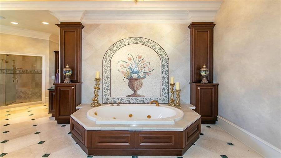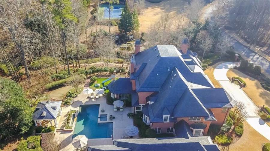 Exquisite Custom-Built English Estate Nestled In The Heart Of NW Cobb County On 3.45 Acres Of Perfection! Grand Foyer w/24′ Ceilings Adorned w/Stunning Swarovski Crystal Chandelier, Custom Marble Floors & Millwork, Flanked By Formal Sitting & Dining Rms, Stunning 2-Story Greatroom Overlooked By Gourmet Chef’s Kitchen Featuring Exotic Granite & Custom Cabinetry, Subzero Fridge & Freezer, Professional SS Range w/Grill & Griddle, Built-In Steamer & Fryer, Ice Machine, Scullery w/Warming Drawer & 2-Sided FP Leading From Breakfast Rm To Sunroom w/Exposed Brick Wall.