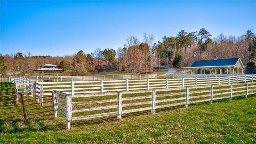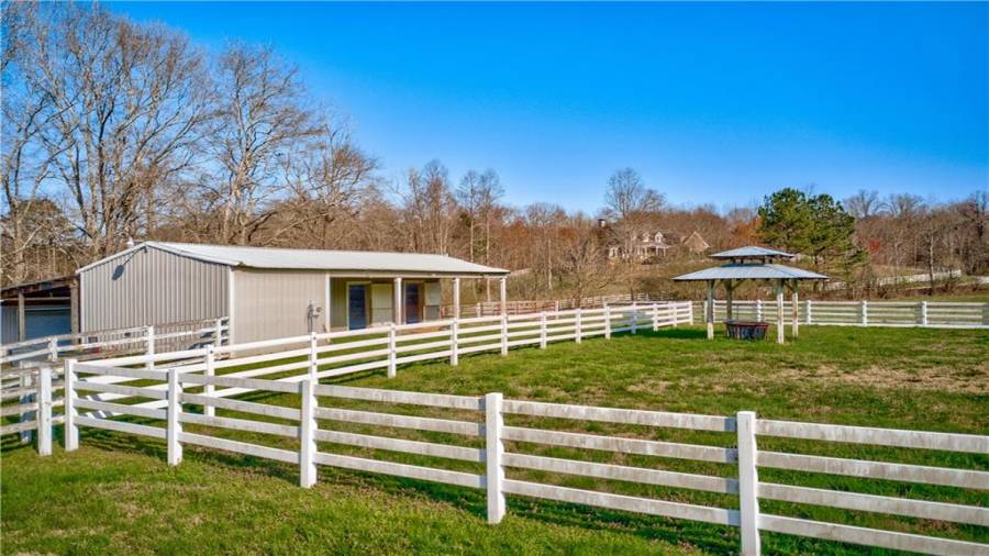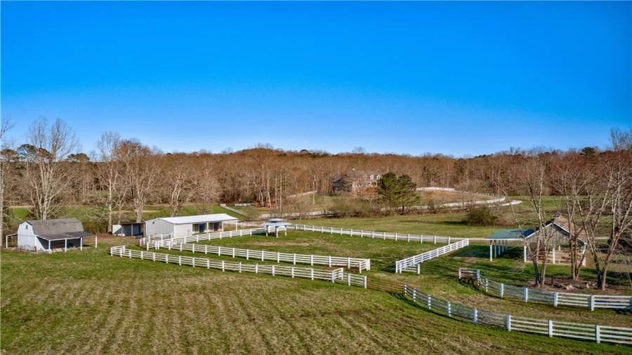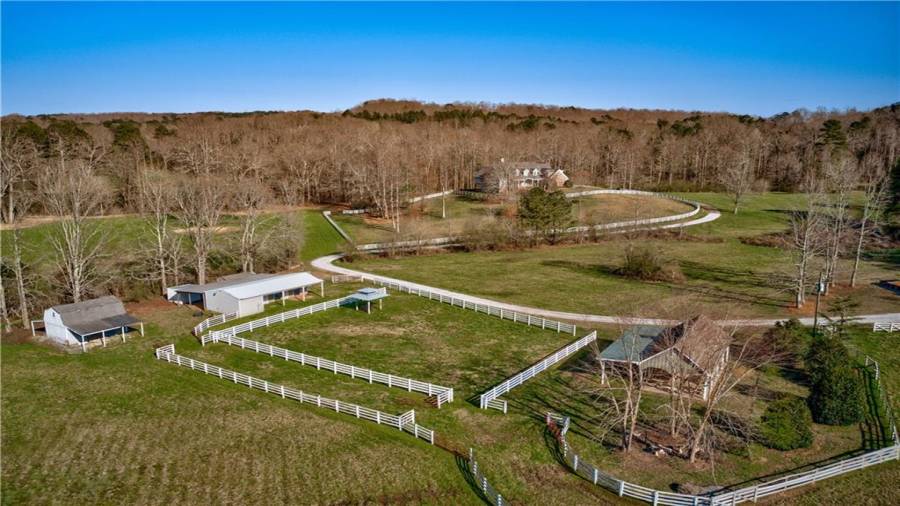 Rare opportunity to own a 30 acre horse farm in a prime location in Cherokee County. This lovely farm features a custom built, highly appointed estate home. Chef’s kitchen features double ovens, spacious island, warming drawer, ample cabinet and counter space open to large breakfast room with vaulted keeping area. Vaulted Great room with beamed ceiling, large formal dining room separate formal study, Oversized owners suite with large sunroom with views of the farm and spa like owners bath with spaciously detailed closets complete the main floor.