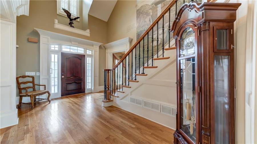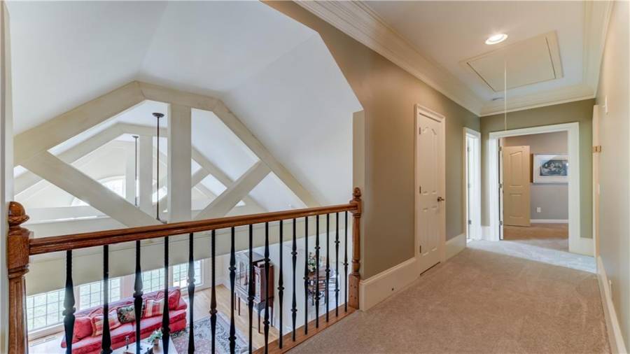 : Cathedral Ceiling(s), Disappearing Attic Stairs, Tray Ceiling(s), Walk-in Closet(s), Beamed Ceilings, Entrance Foyer 2 Story, Bookcases, Coffered Ceiling(s)