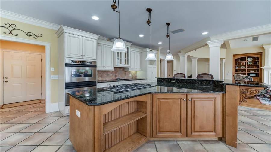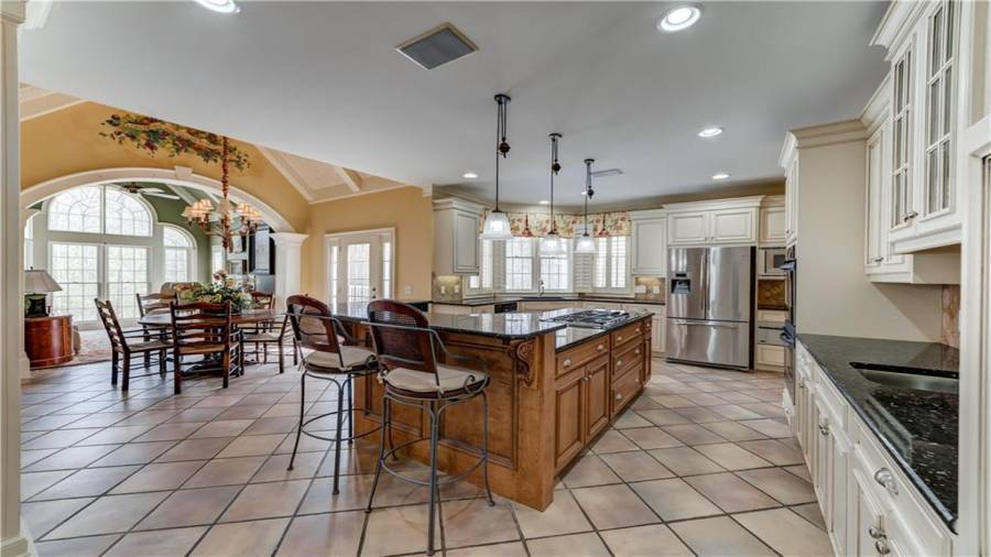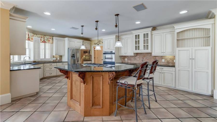 : Breakfast Bar, Breakfast Room, Cabinets White, Pantry Walk-in, Second Kitchen, View To Family Room, Stone Counters