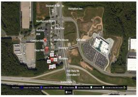 Great opportunity to purchase undeveloped Land Zone CG, next to Hwy 92 and I-75 across from Cabelas in Acworth! Approx 185' frontage on North bound Exit ramp from Hwy 92 to I-75. Additional land contiguous space to this tract is also available. All utilities available.