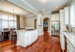 Exceptional Estate on 2 acres, gated with pool and tennis. A graceful family home that has been renovated with the finest materials. The elegant kitchen features an oversized island of calcutta gold marble, custom stainless steel hood, new appliances and cabinetry with special inset hardware and iron details. The breathtaking kitchen flows seamlessly into a fireside family room.
